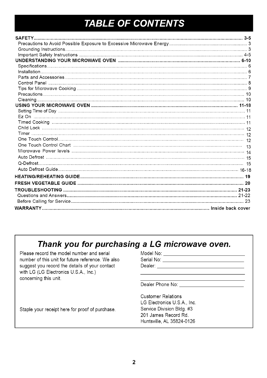 Thank you for purchasing aLG microwave oven.