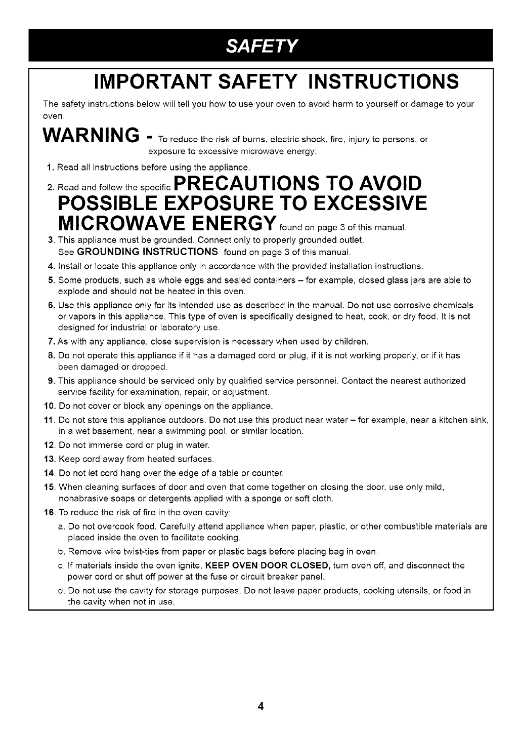 Precautions to Avoid Possible Exposure to Excessive Microwave Energy ............................................................ 3