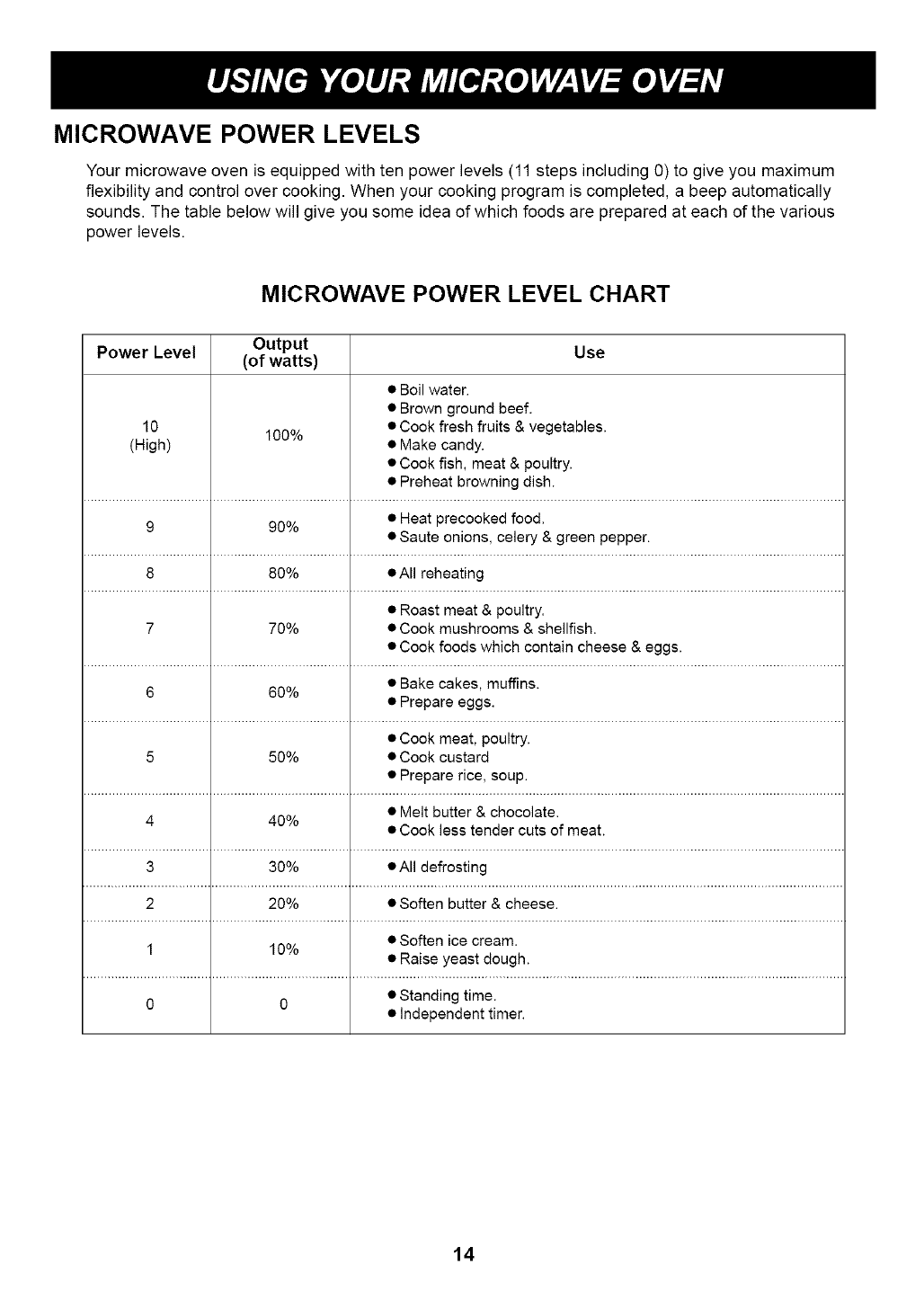 Microwave Power levels ..................................................................................................................................... 14