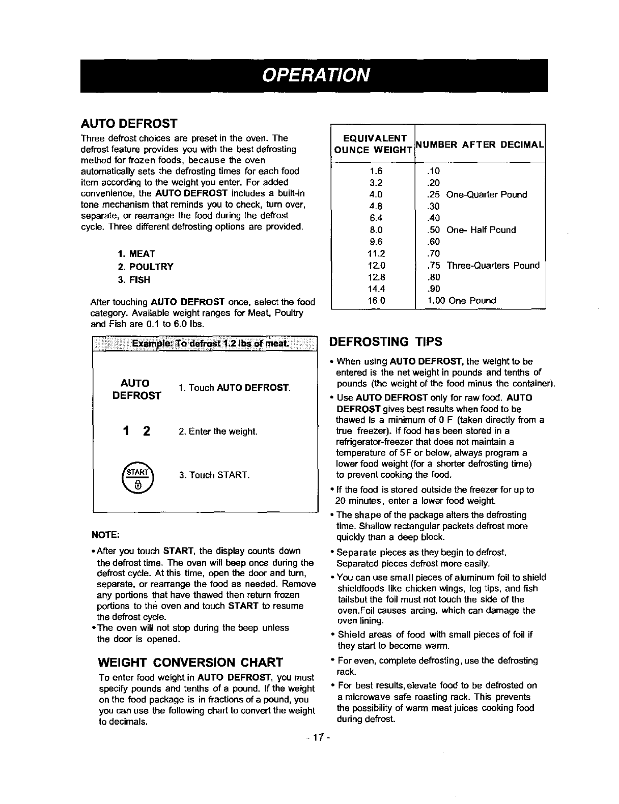 Auto Defrost ...................................................... 17