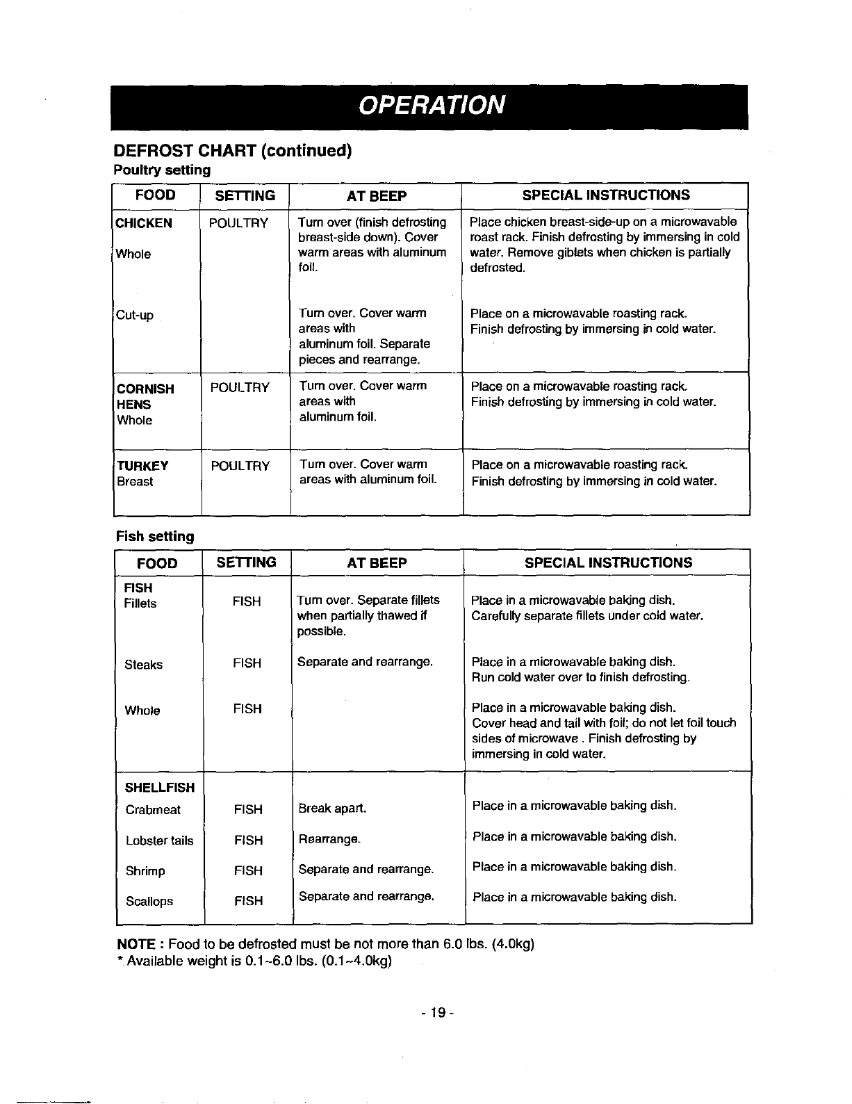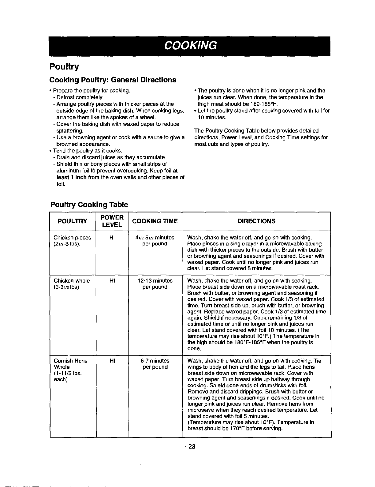 •be sure food is completely defrosted before cooking.