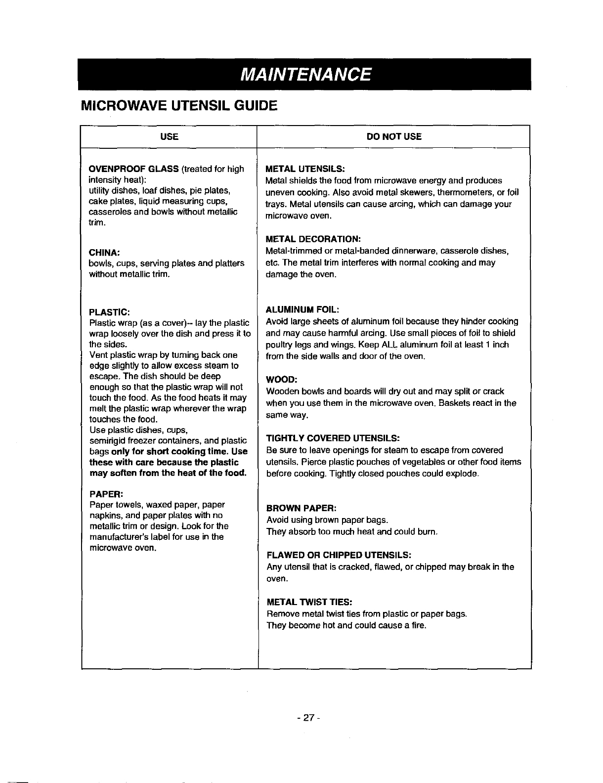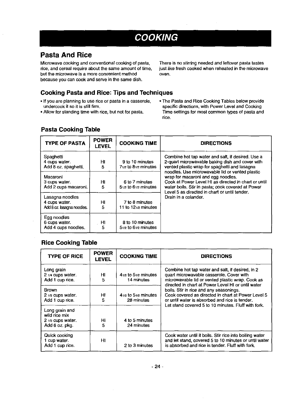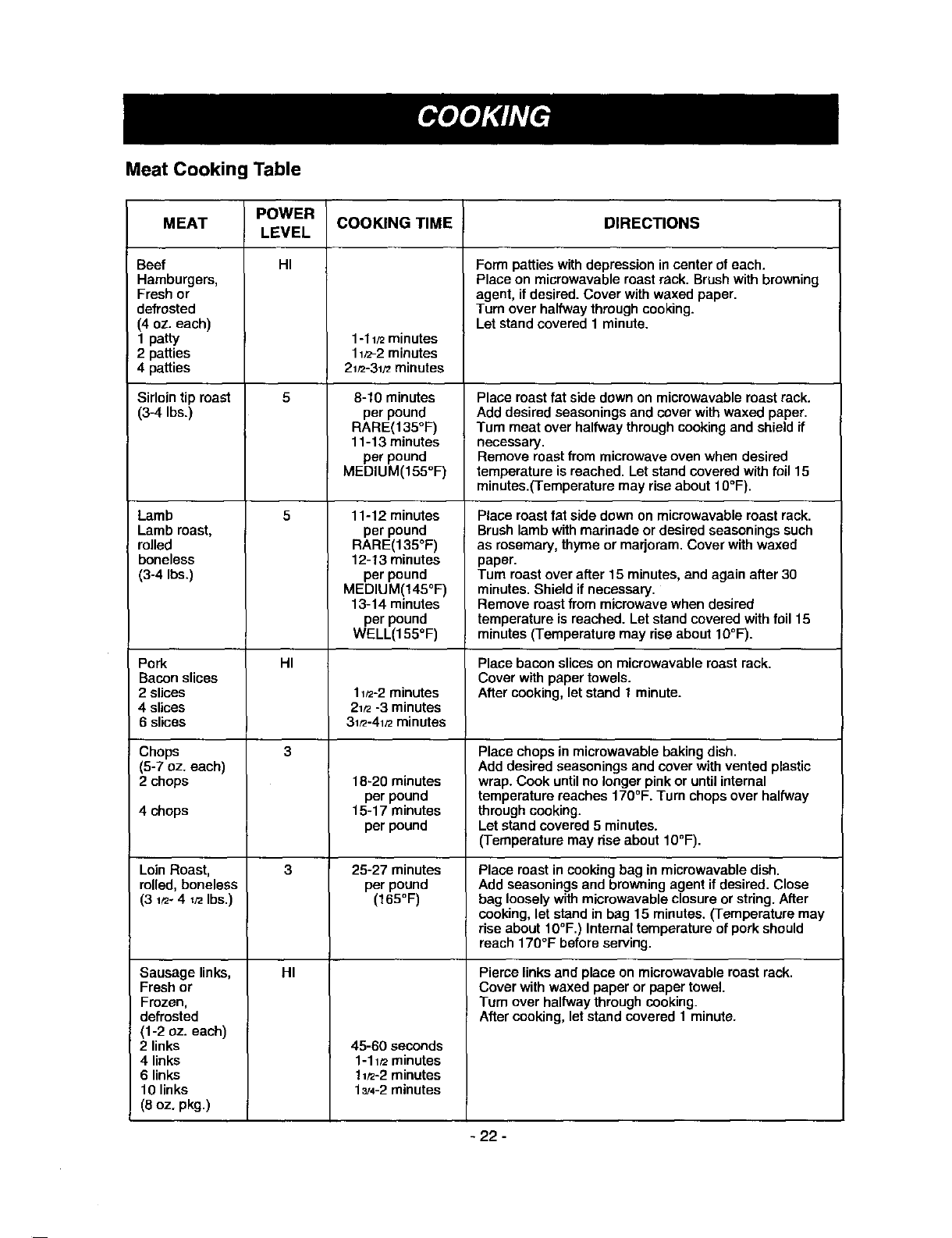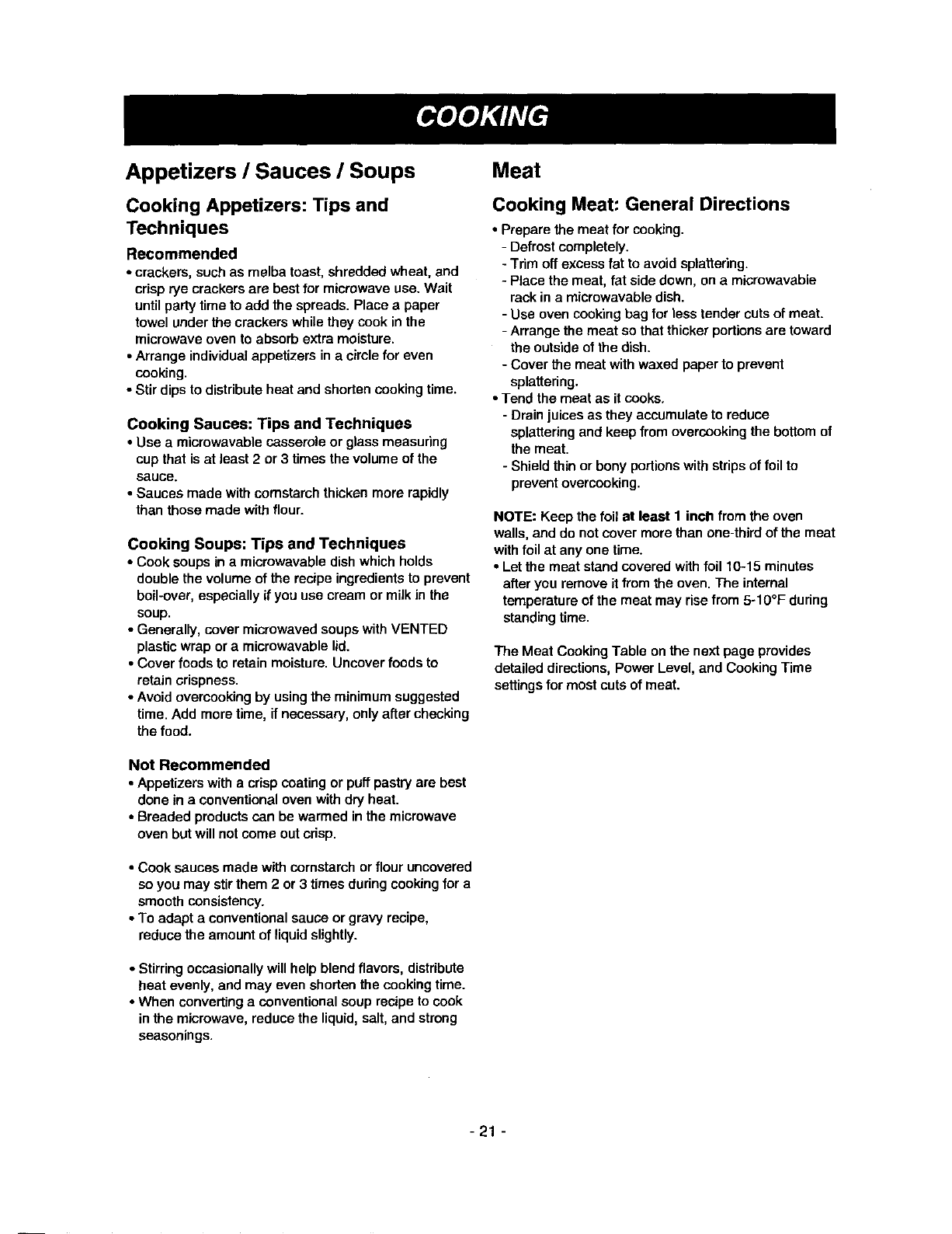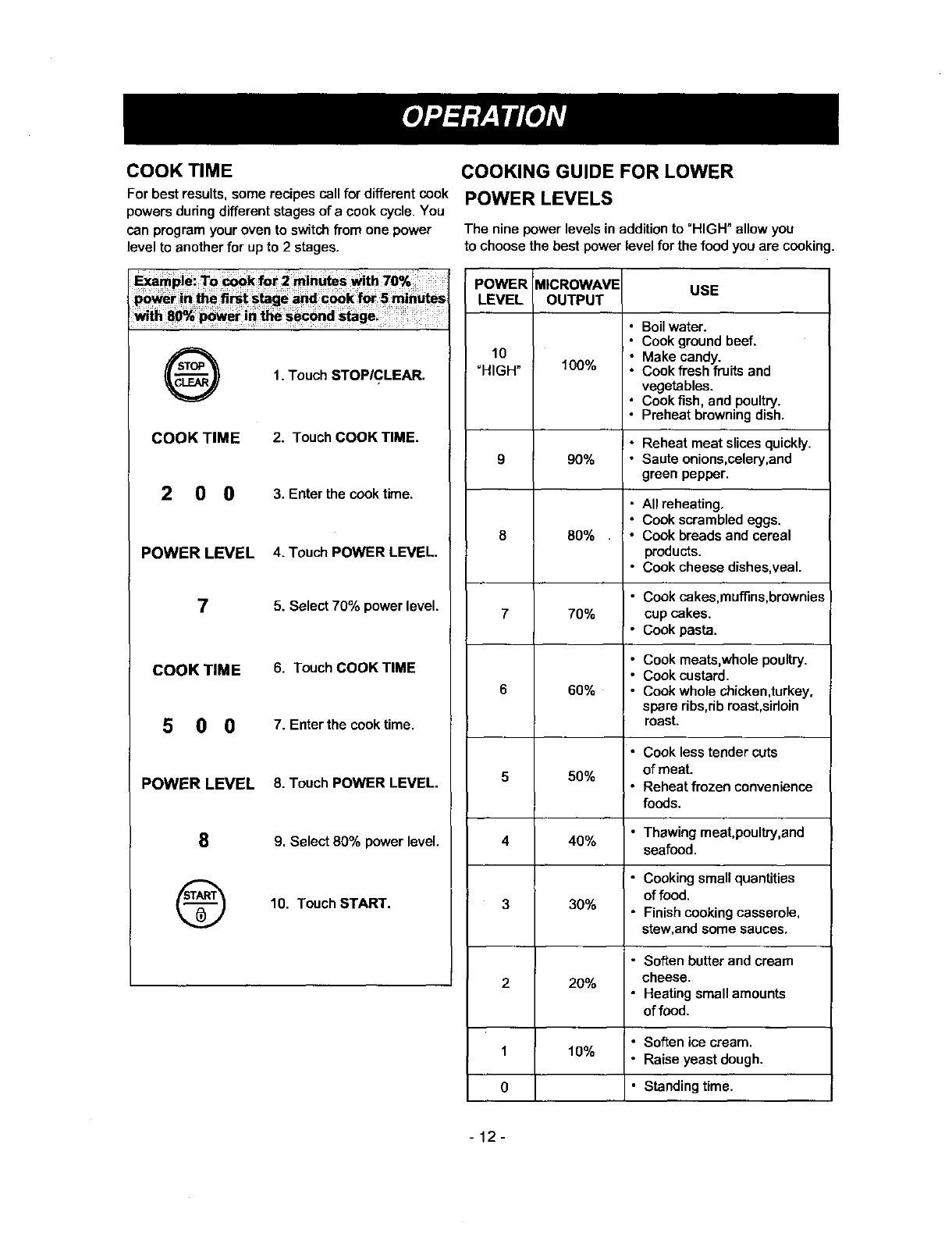 Cooking Guide for Lower Power Levels ............. 12