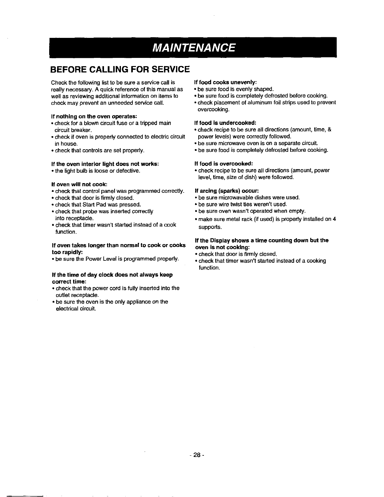 BEFORE CALLING FOR SERVICE