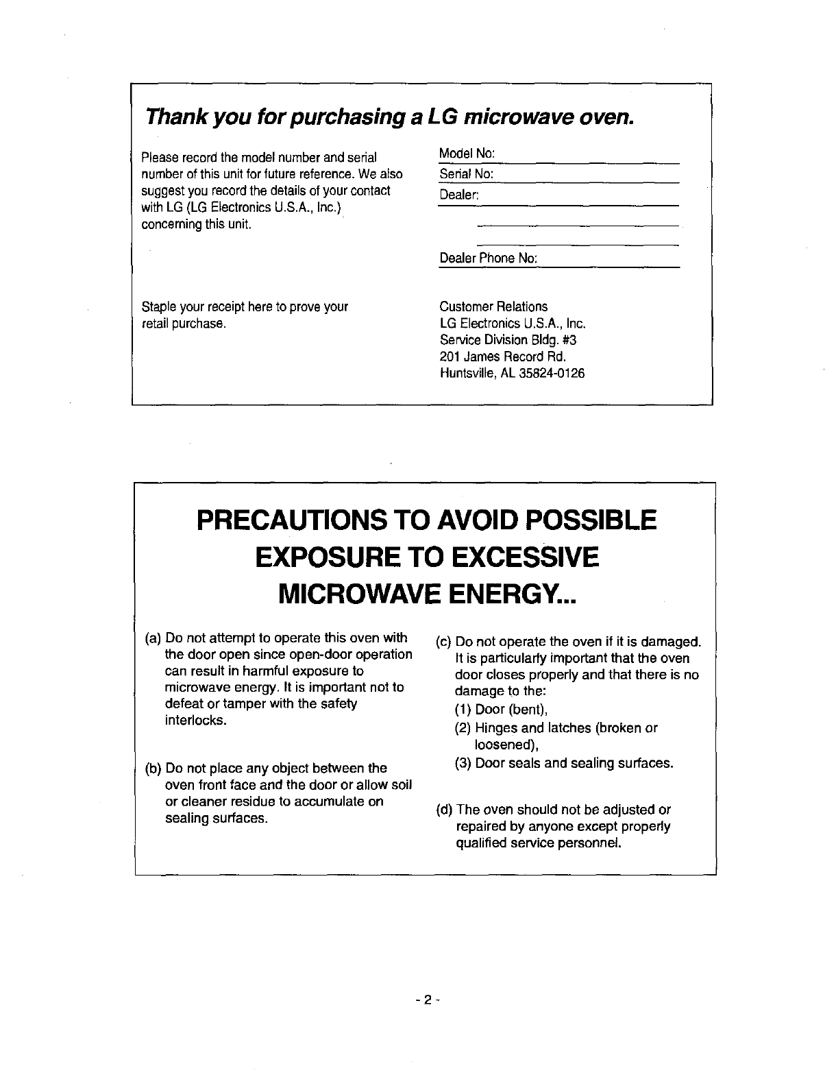 Thank you for purchasing a LG microwave oven.
