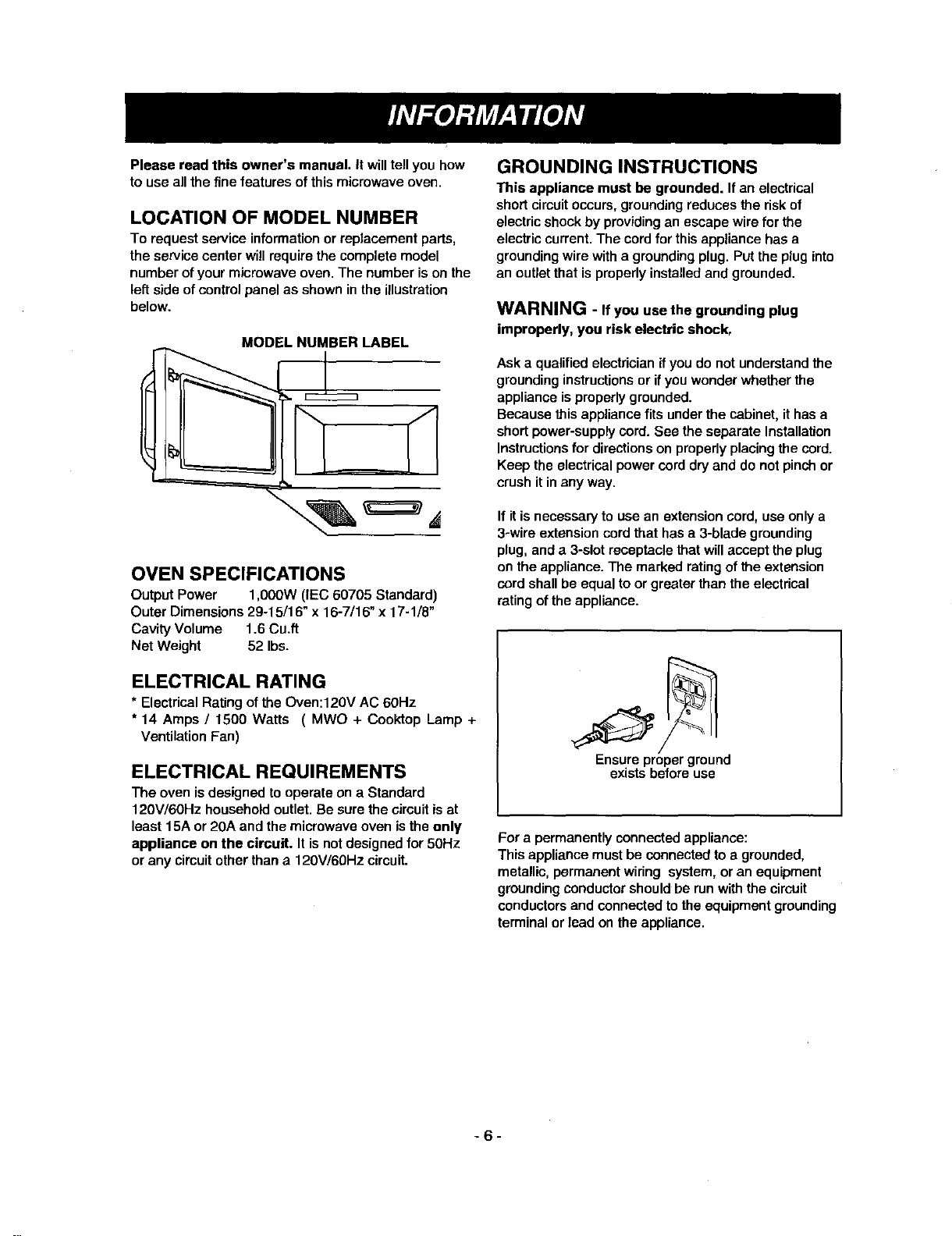 Electrical Rating ..................................................... 6
