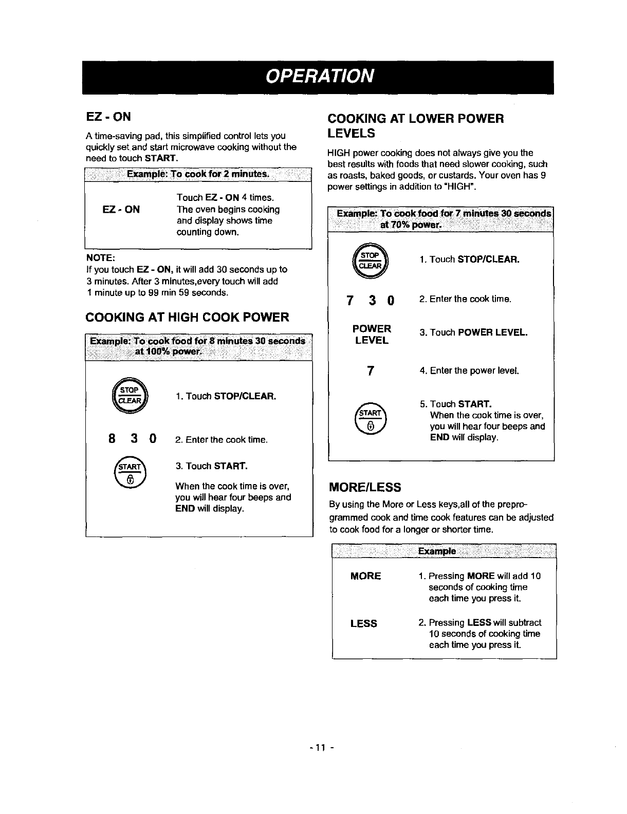 Cooking at Lower Power Levels ......................... 11