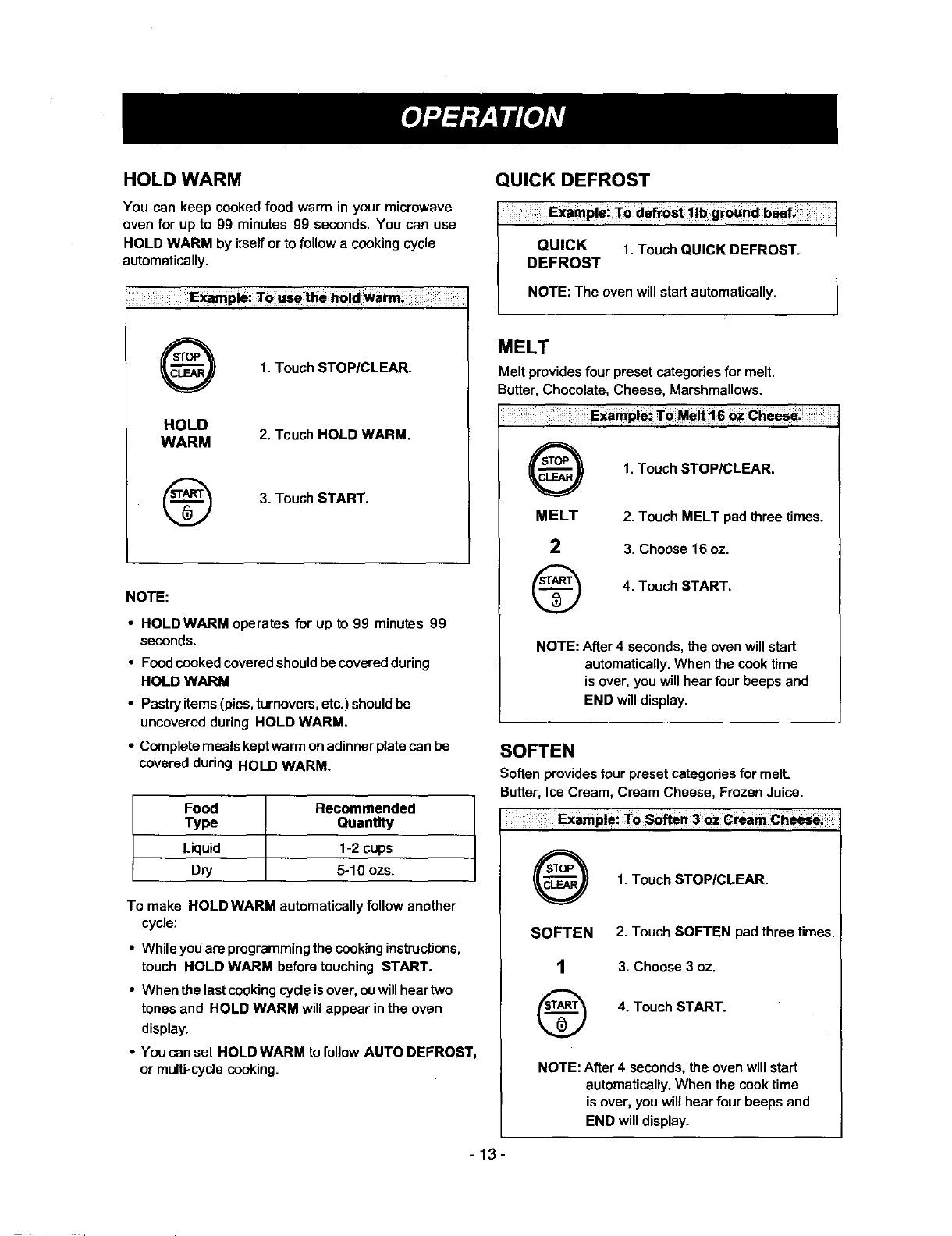 Hold Warm ......................................................... 13