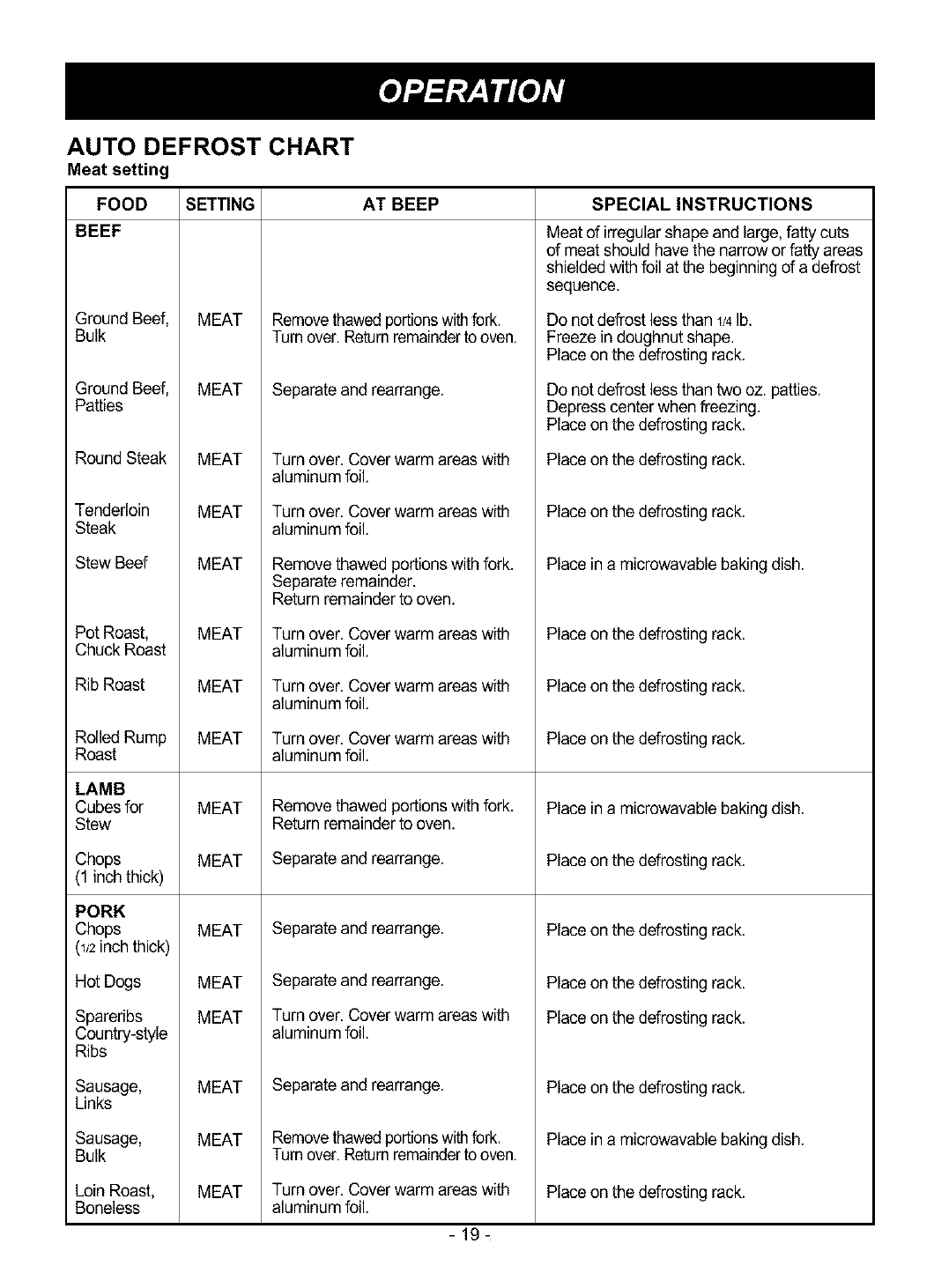 Auto Defrost Chart ........................................ 19