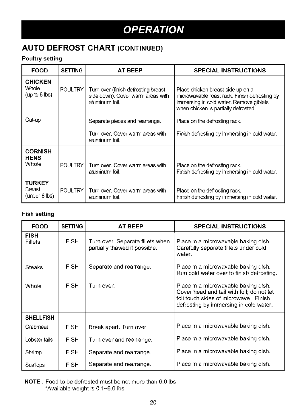• be sure food is completely defrosted before cooking.