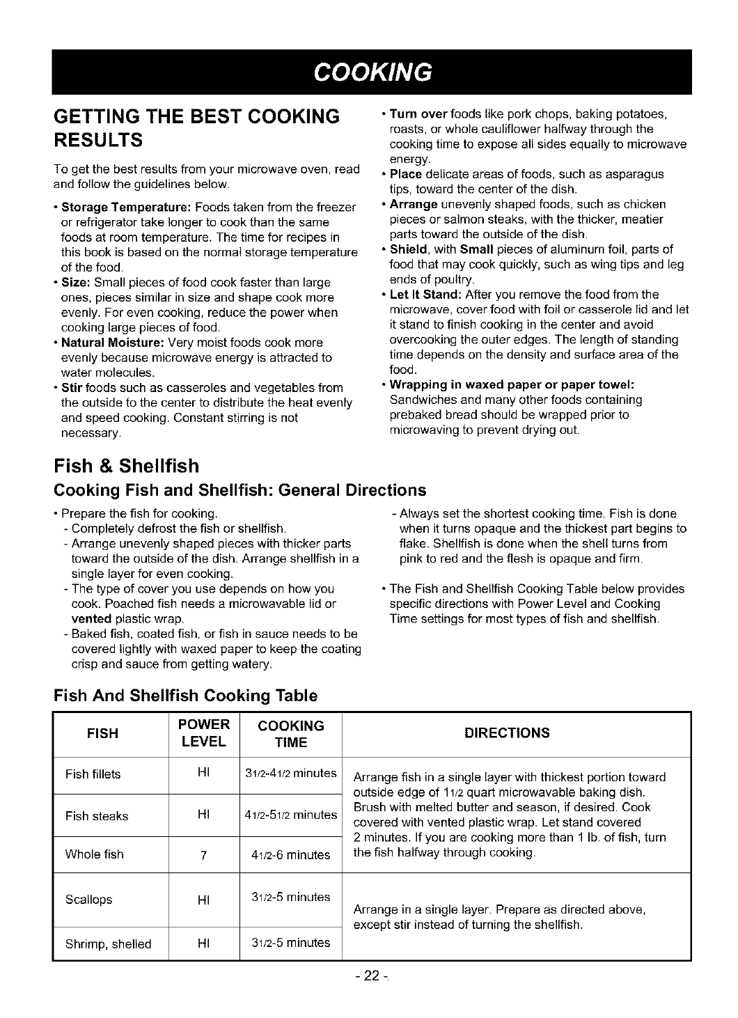 Getting the Best Cooking Results ................. 22