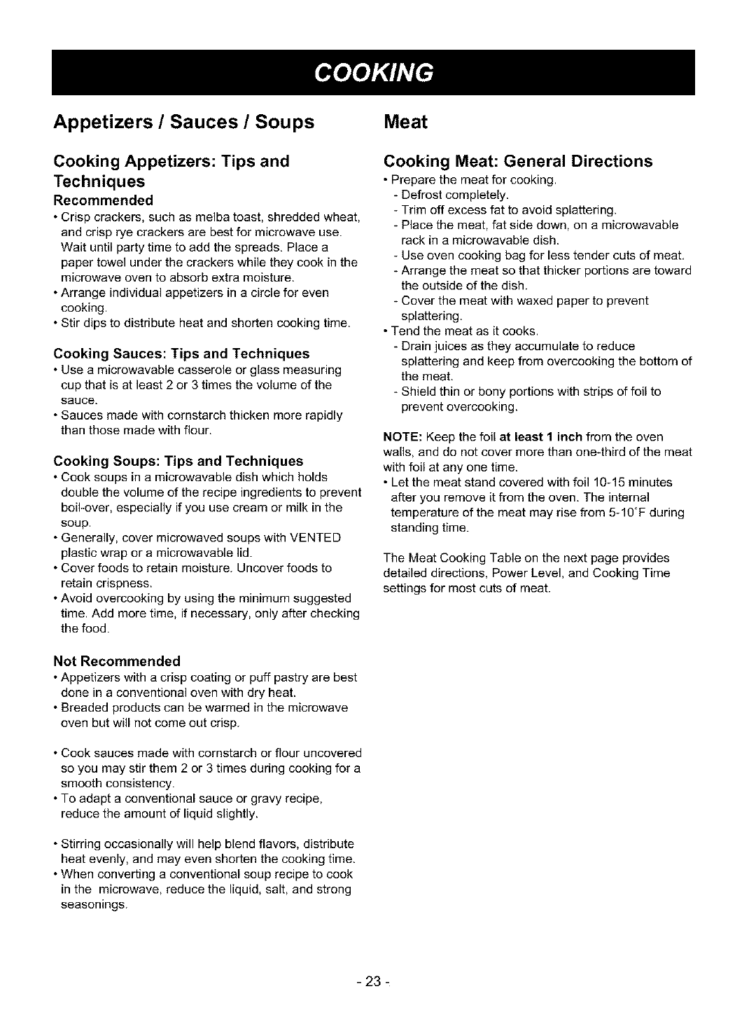 COOKING ........................................................... 22