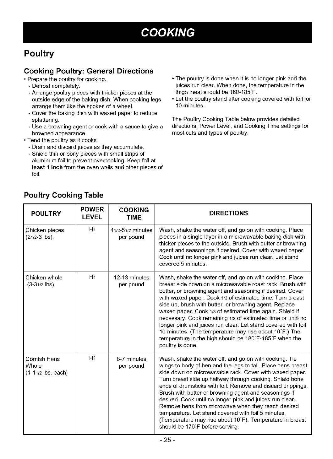 Cooking at Lower Power Levels ..................... 13