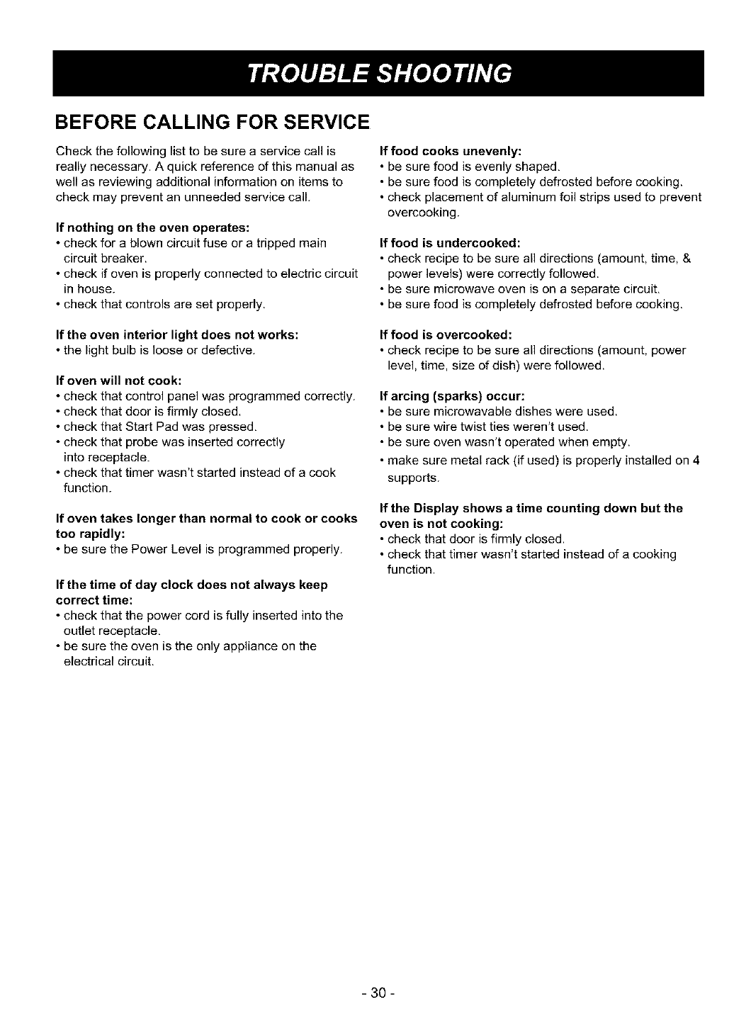 BEFORE CALLING FOR SERVICE
