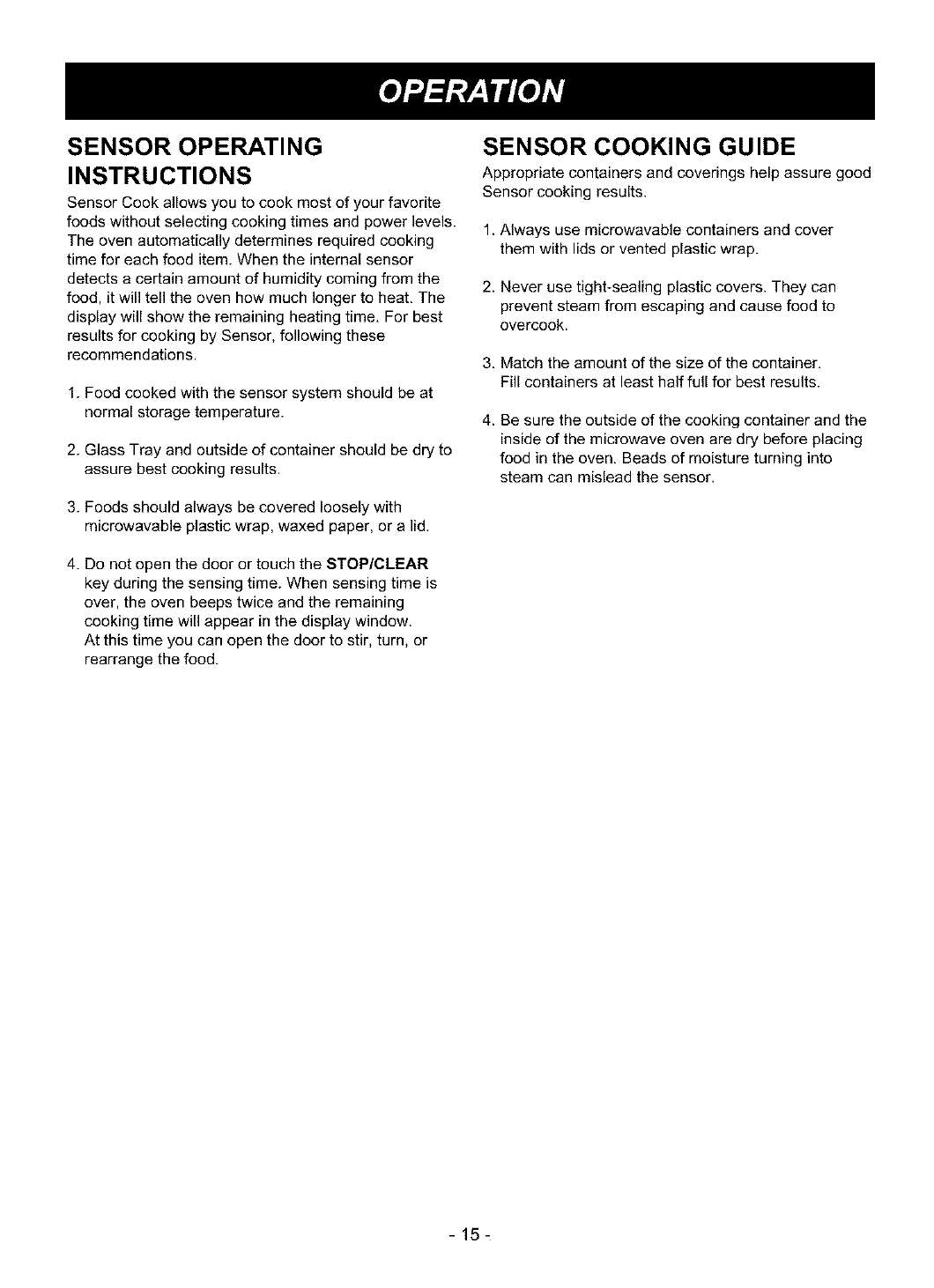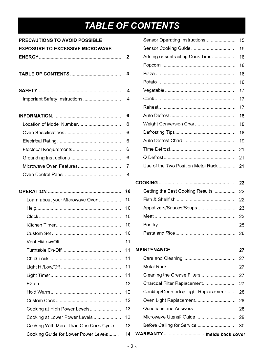 Sensor Cooking Guide .................................. 15