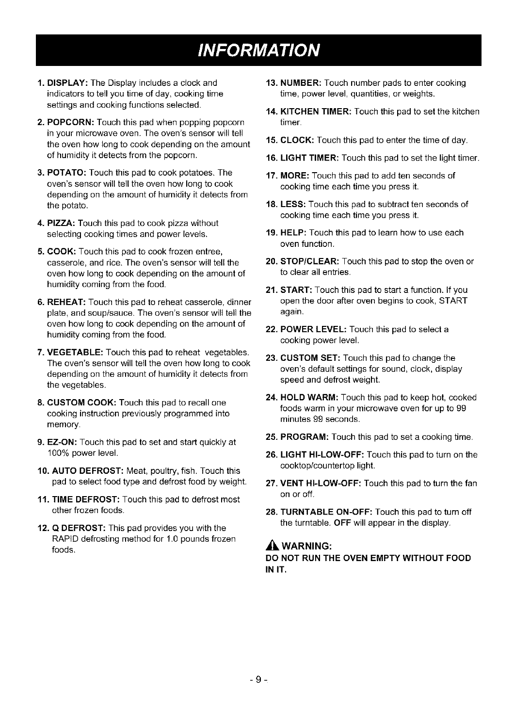 (a) Do not attempt to operate this oven with