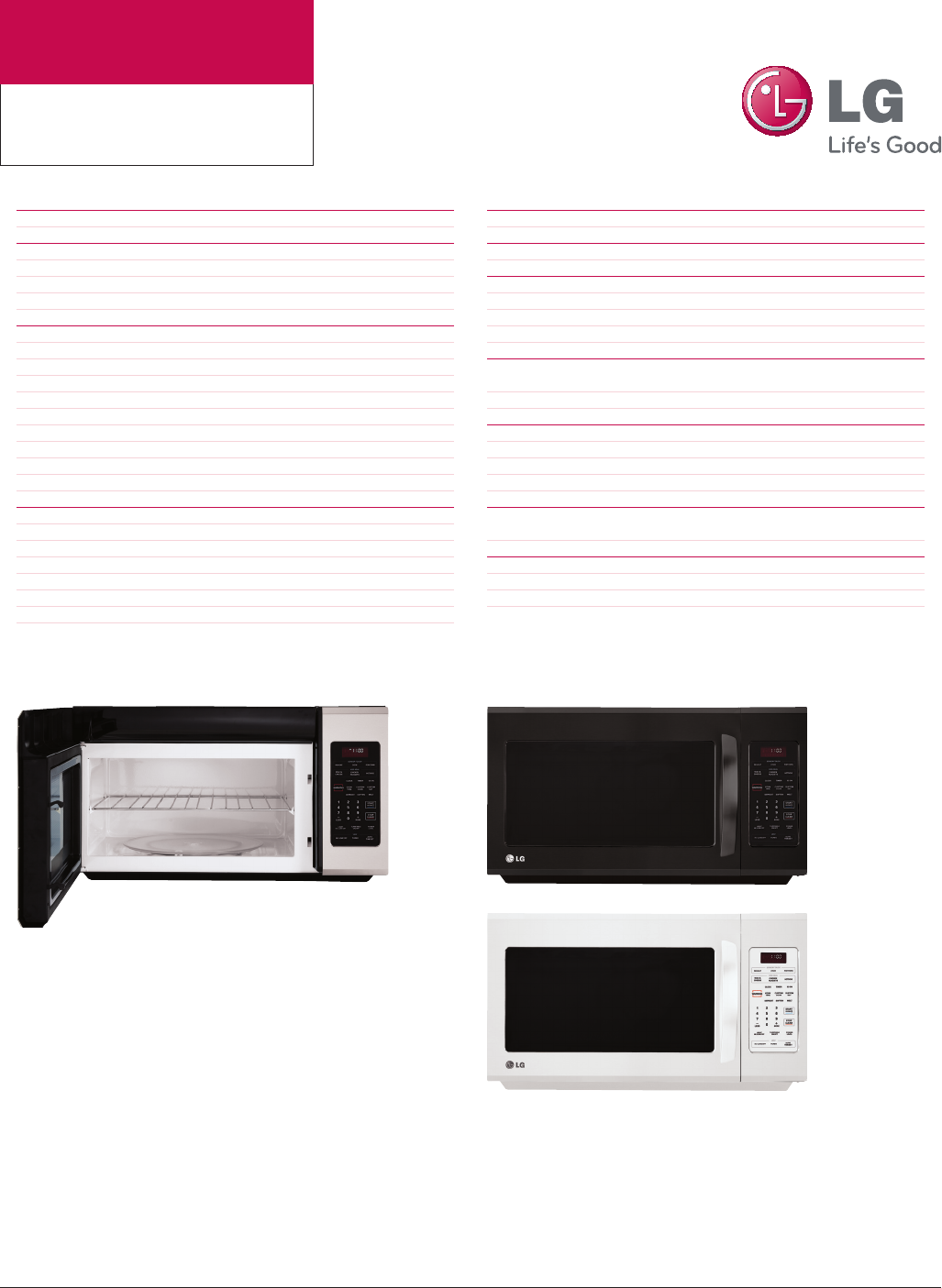 User Manual: LG LMV2015ST Specification Summary of product features, dimensions, and components. (English)