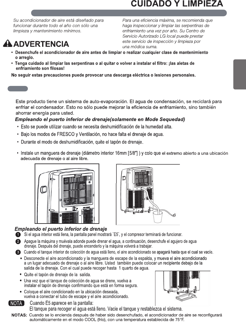 el modo Cool (Refrigeración), la manguera de drenaje no es necesaria.