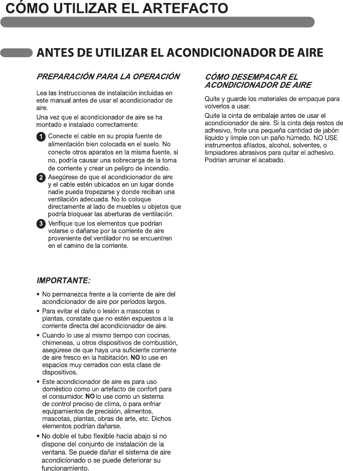 • Antes de usar, el electrodoméstico debe estar correctamente instalado según lo descrito en este manual.
