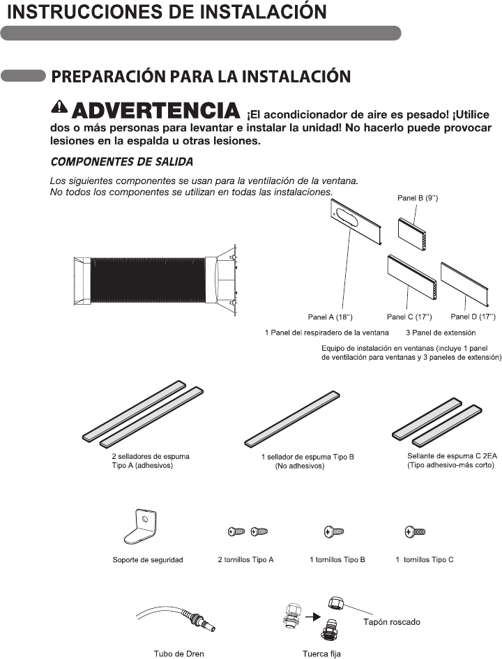 Si utiliza el modo Heat (Calefacción), debe instalar la manguera de drenaje. Si sólo utiliza