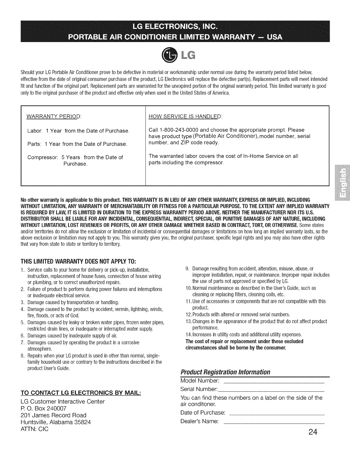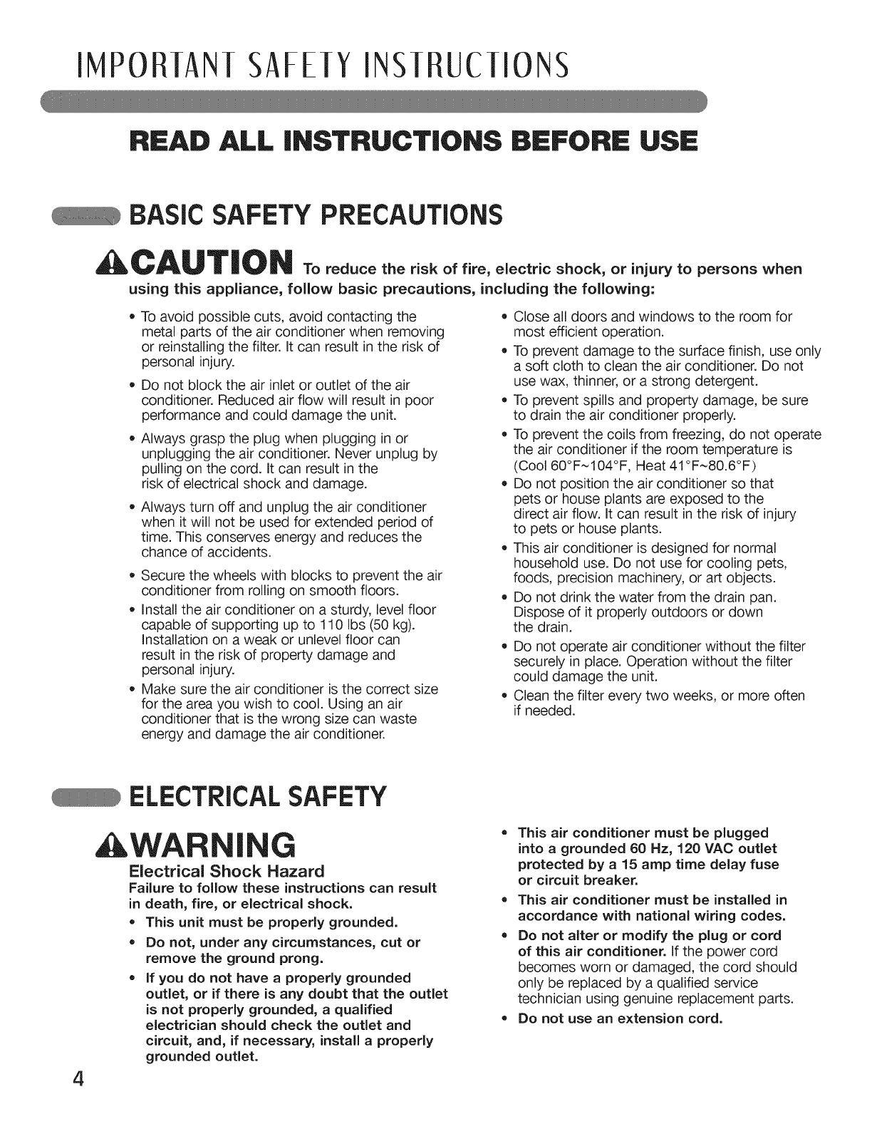 LG LP1411SHR 1112102L User Manual AIR CONDITIONER Manuals And Guides