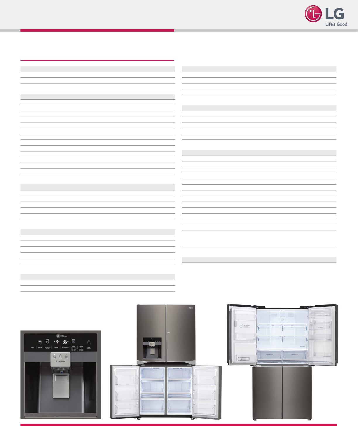 User Manual: LG LPXS30866D Specification Summary of product features, dimensions, and components. (English)