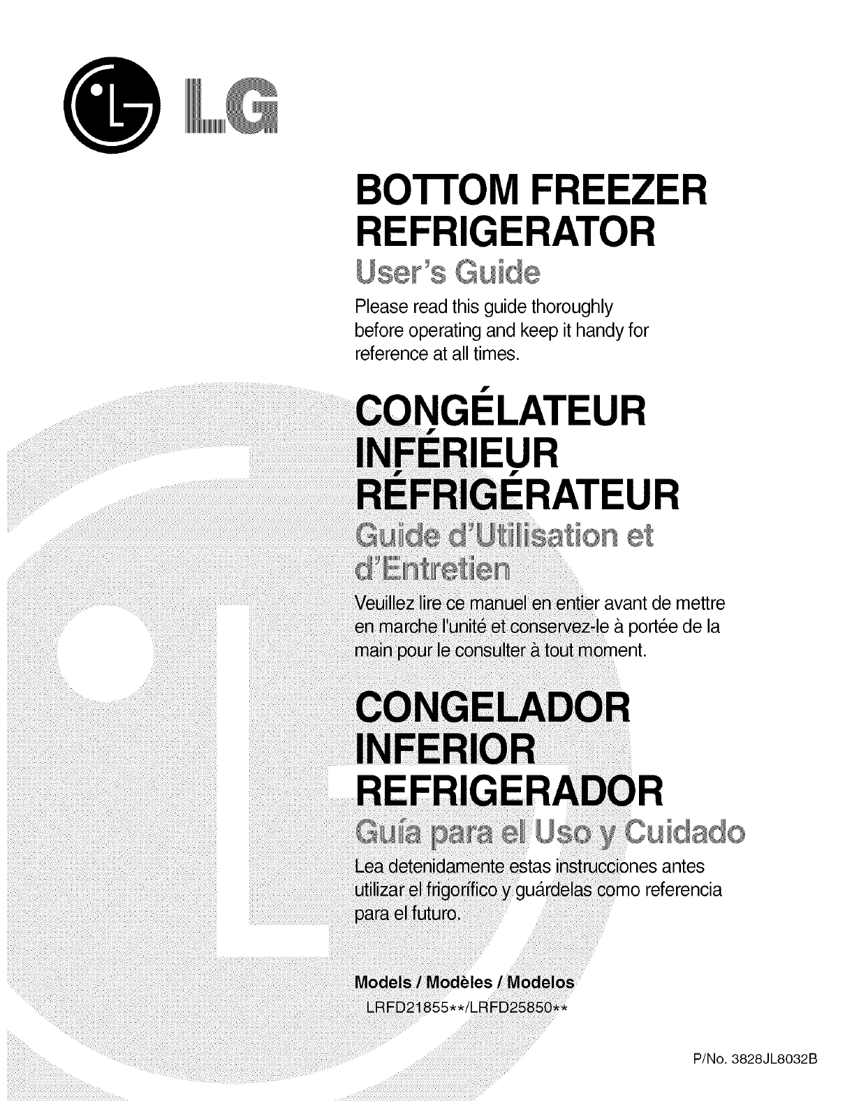 LG Bottom Mount Refrigerator Manual L0521420 LG Bottom Mount Refrigerator Owner's Manual, LG Bottom Mount Refrigerator installation guides