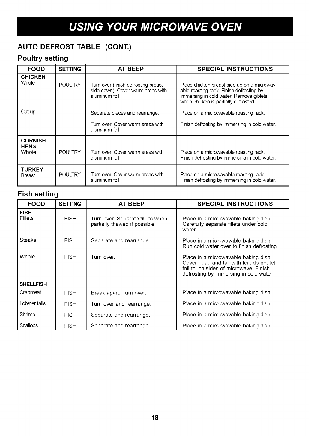 USING YOUR MICROWAVE OVEN ................................................................................................................. 10-20
