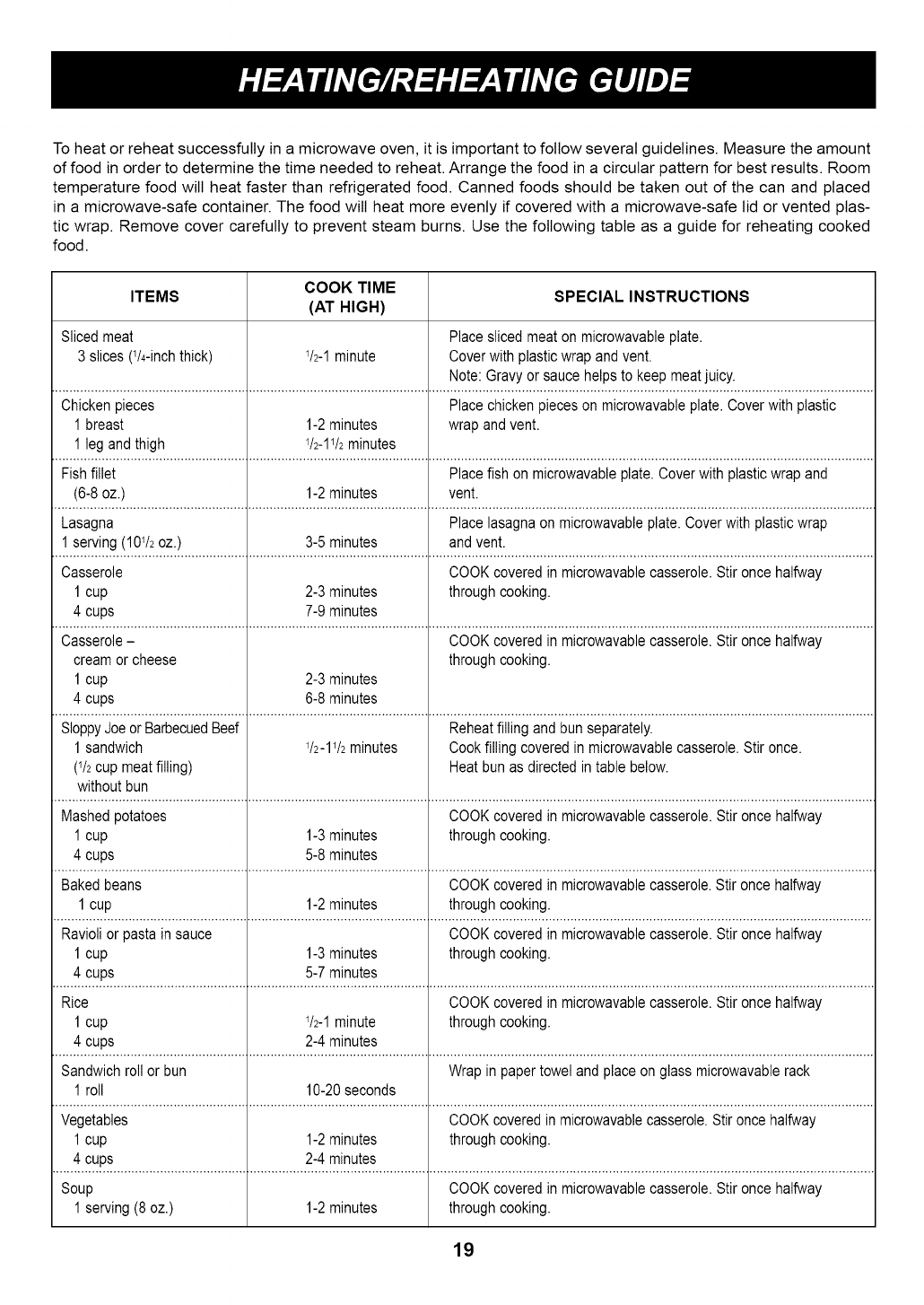 HEATING/REHEATING GUIDE ............................................................................................................................... 19