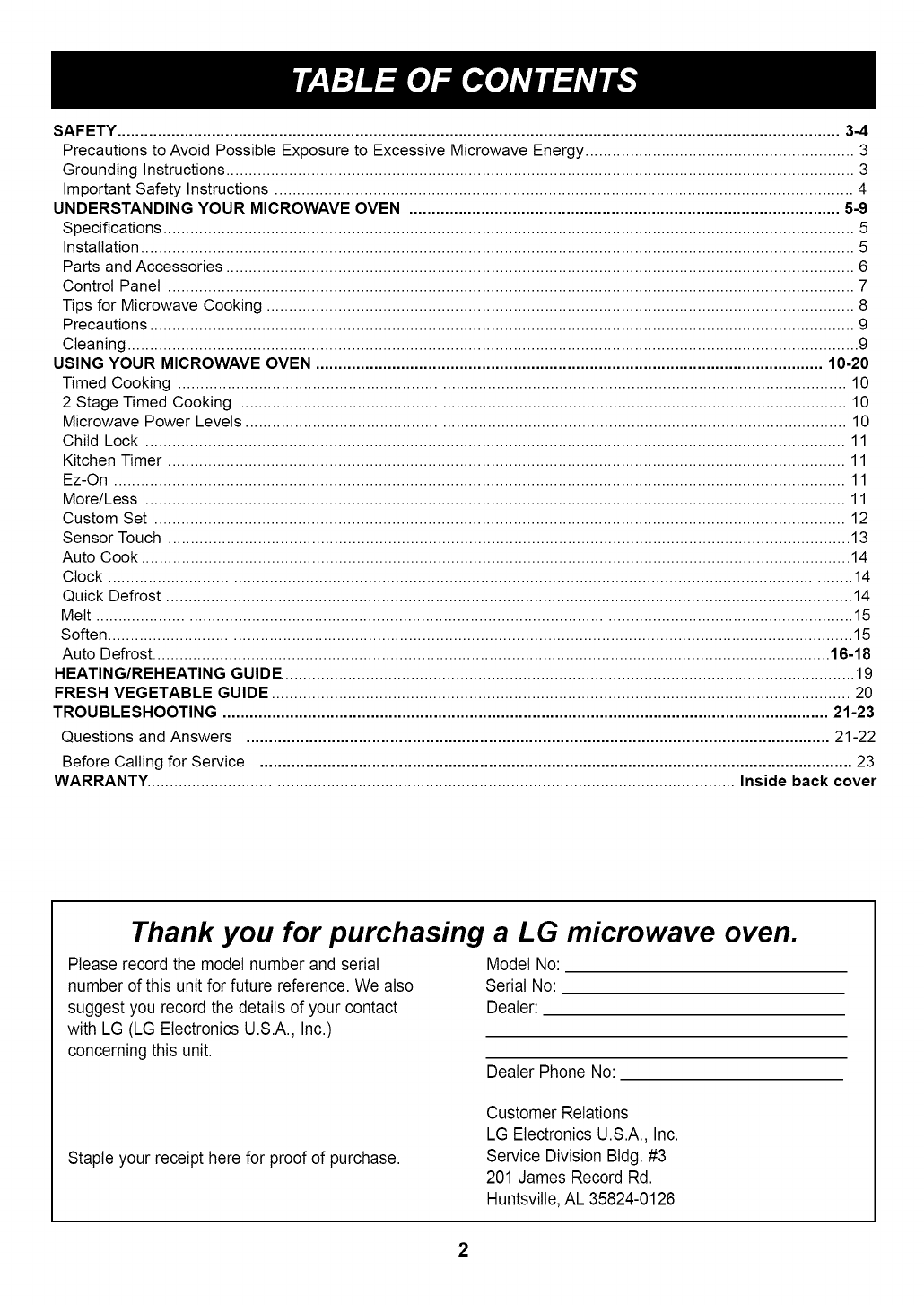 LG LRM1260SW User Manual MICROWAVE OVEN Manuals And Guides L1005285