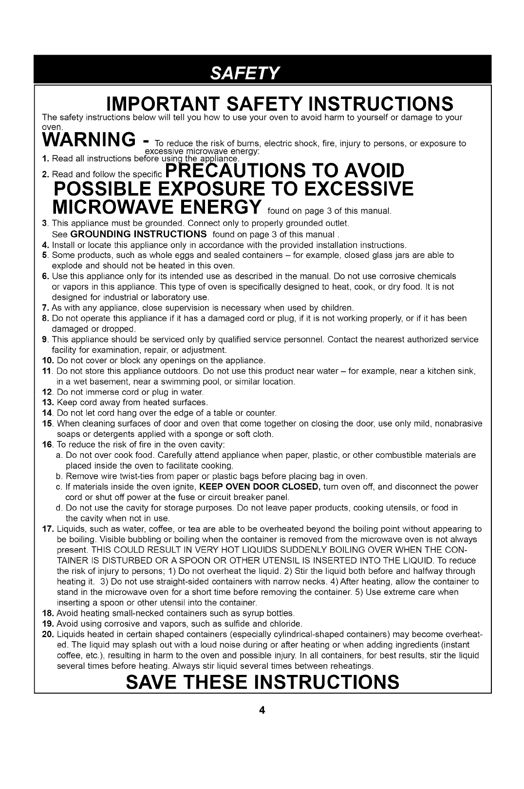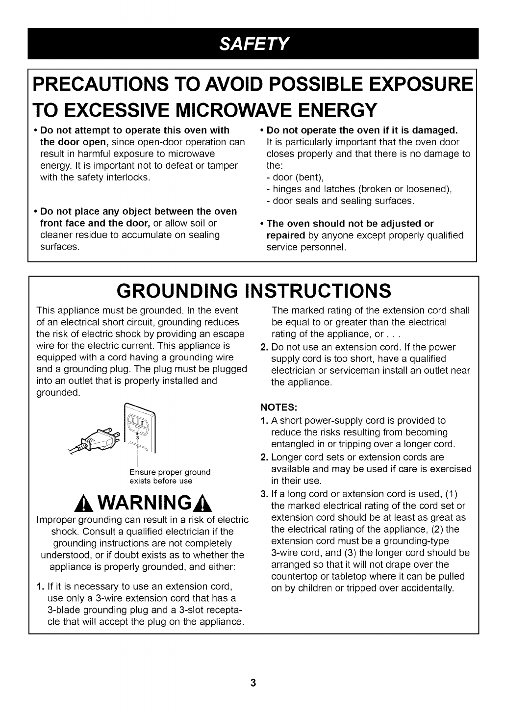 Precautions to Avoid Possible Exposure to Excessive Microwave Energy ............................................................ 3