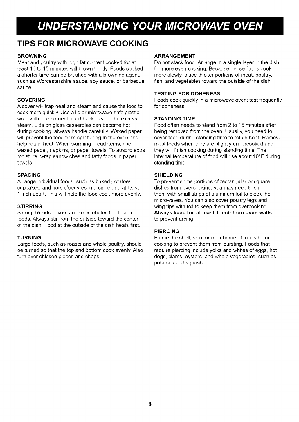 Tips for Microwave Cooking ................................................................................................................................... 8