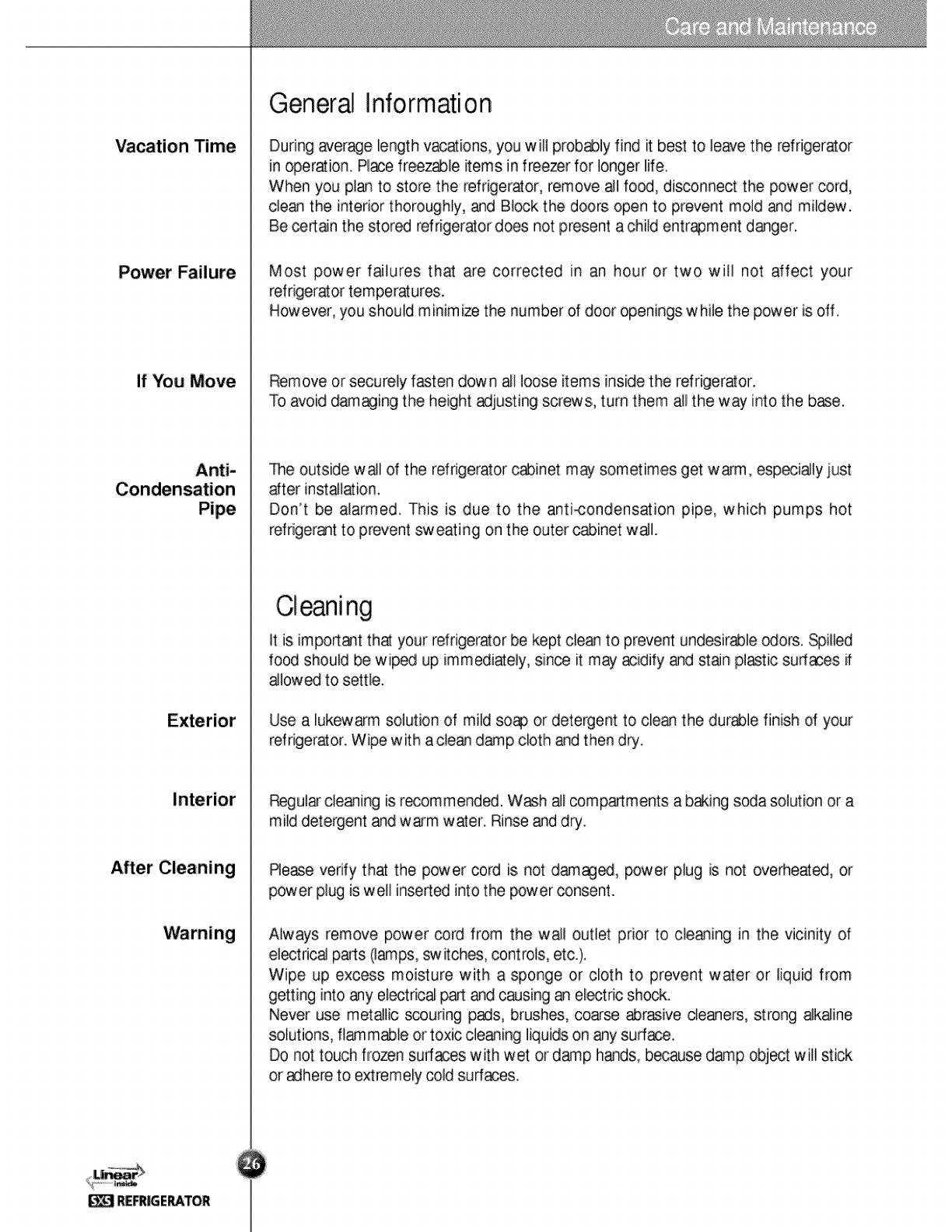 Never unplug your refr£erator by pulling on the power _rd Always grip the plug firmly