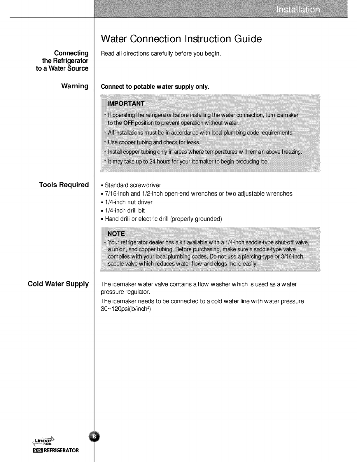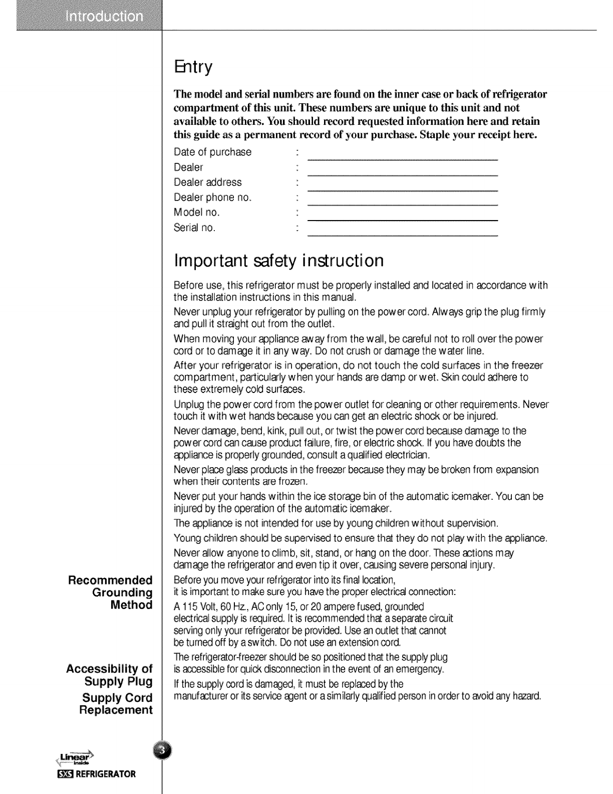 Before use, this refdgeraor must be properly instaJled and Iocaed in accordan_ w ith