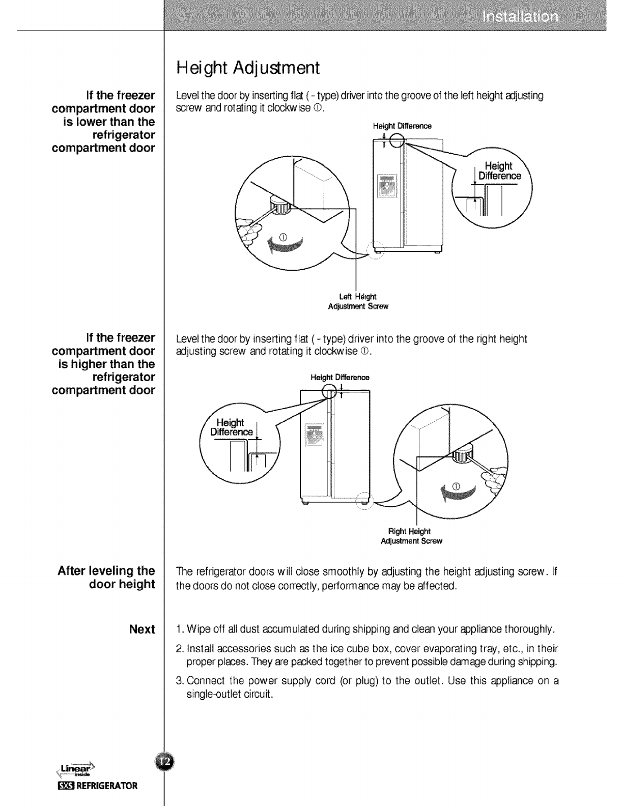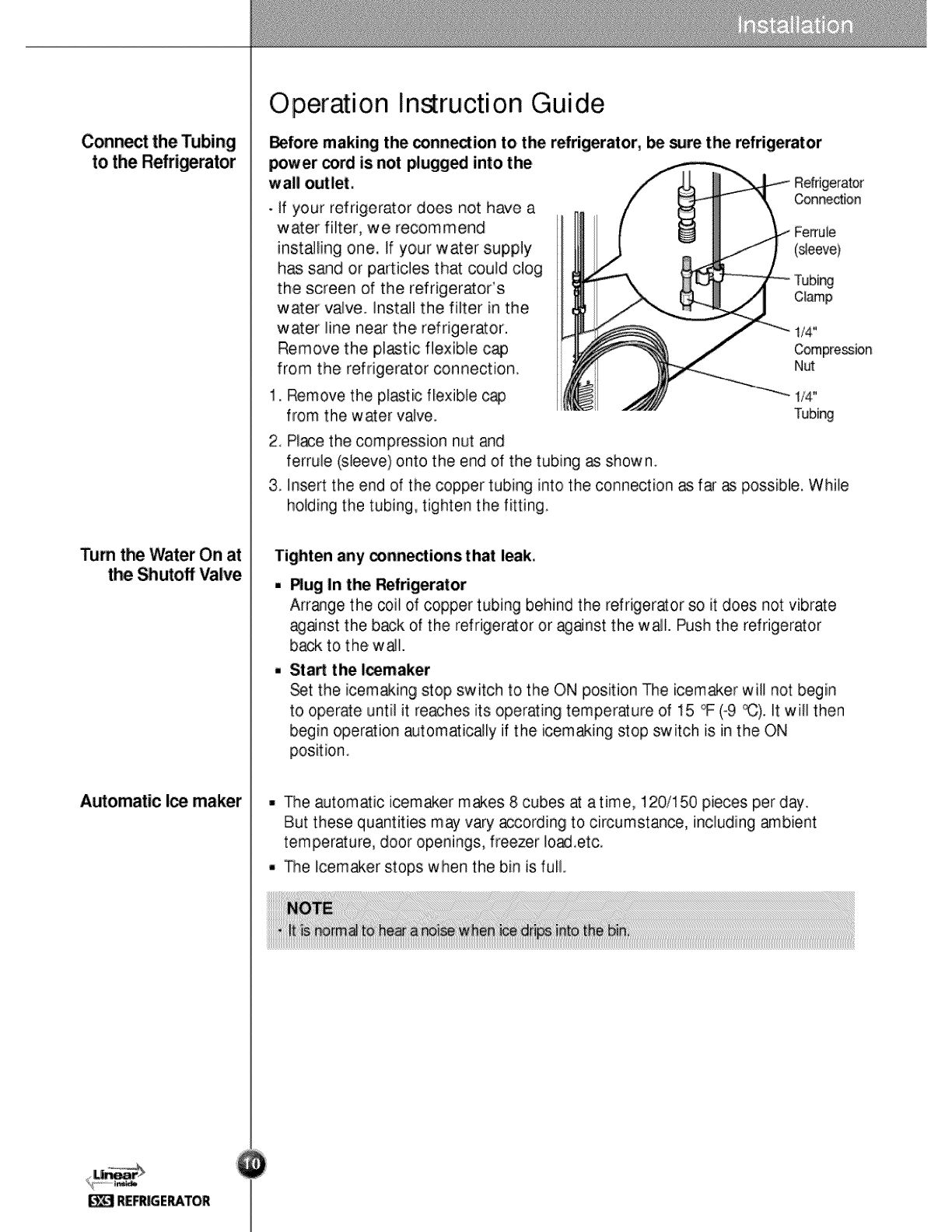 LG Side by Side Refrigerator Manual L1004197 LG Side by Side Refrigerator Owner's Manual, LG Side by Side Refrigerator installation guides
