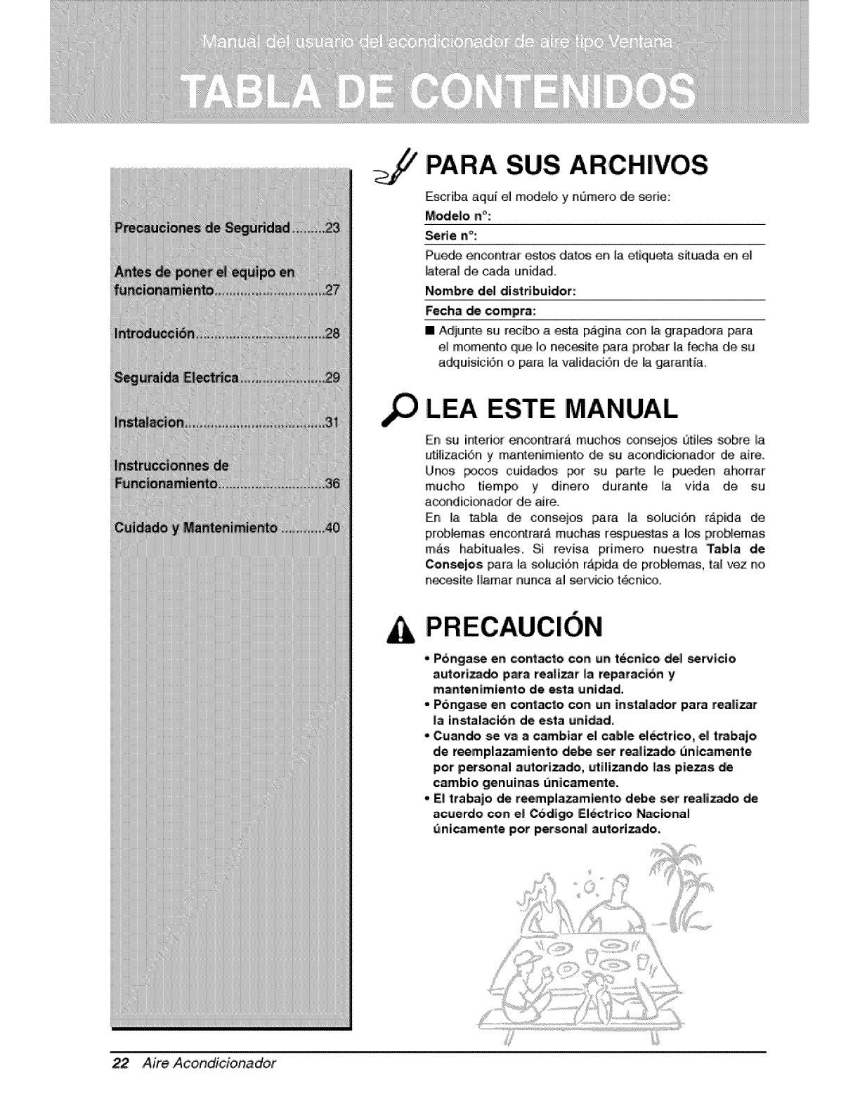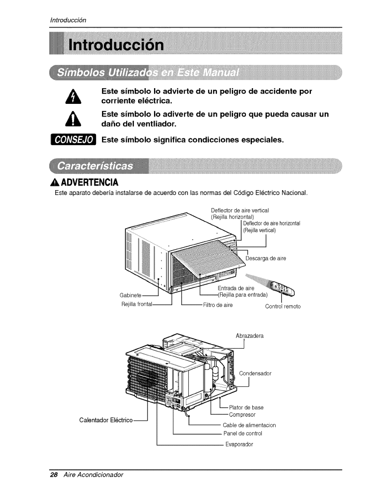 acondicionado), nOmero de modelo, nOmero de serie, y c6digo
