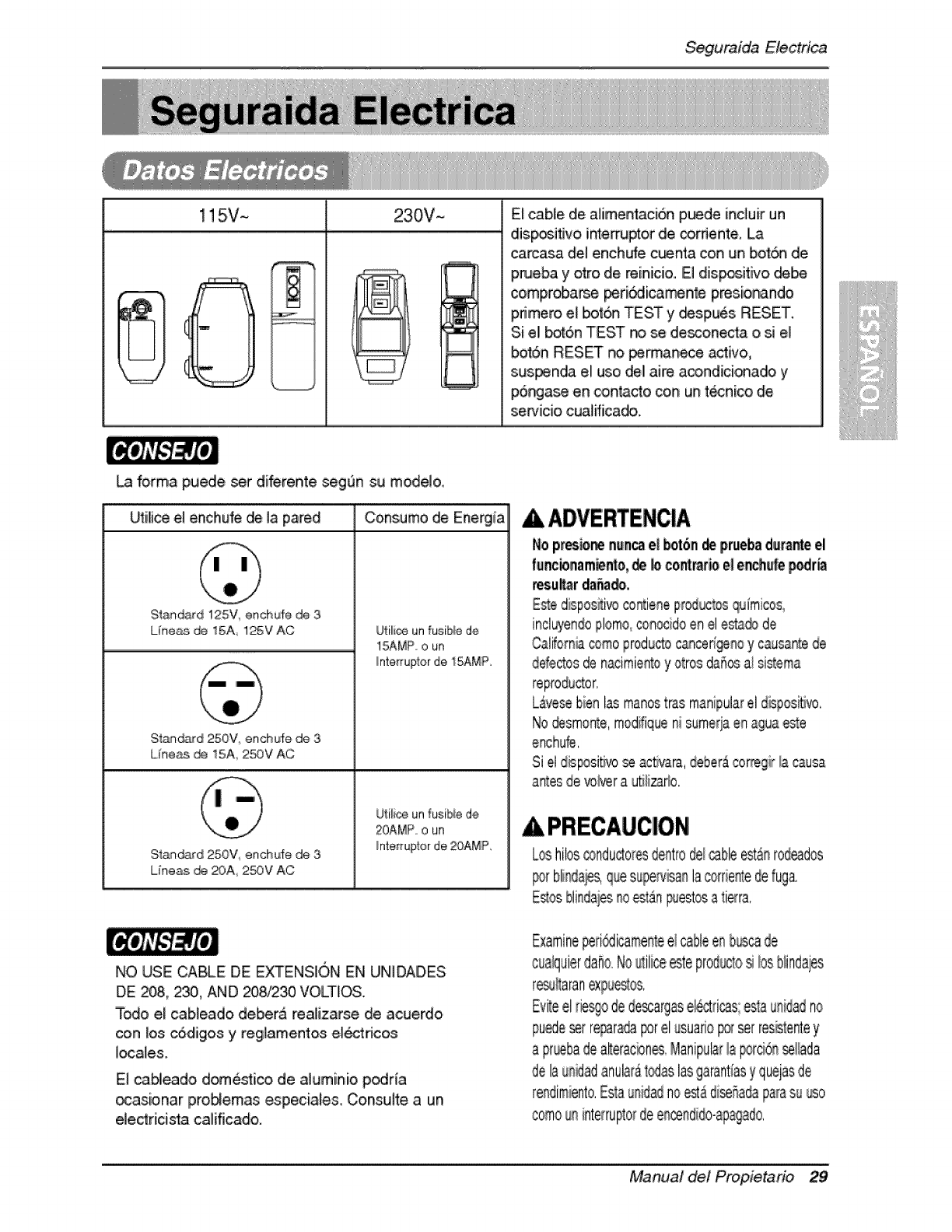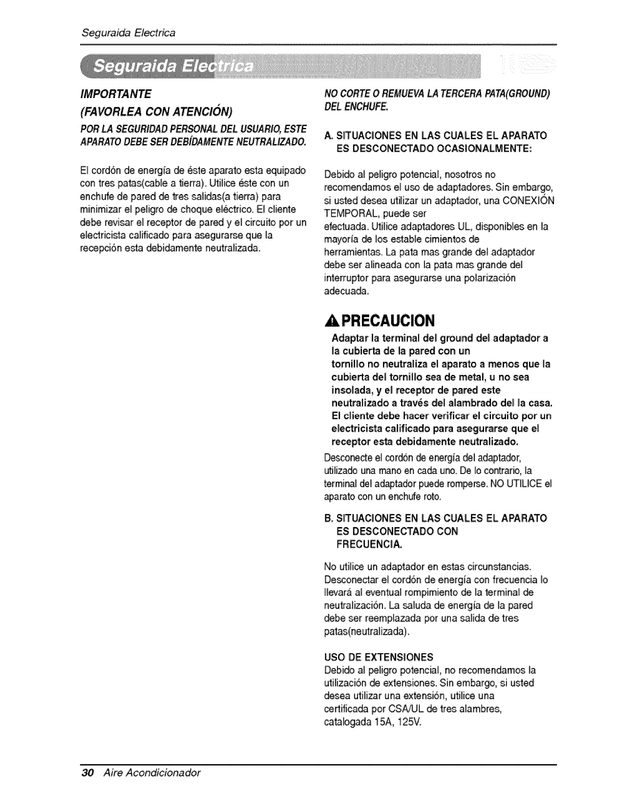 fusibles en su casa o corregir el cableado, o la correcci6n de reparaciones no autorizadas; y
