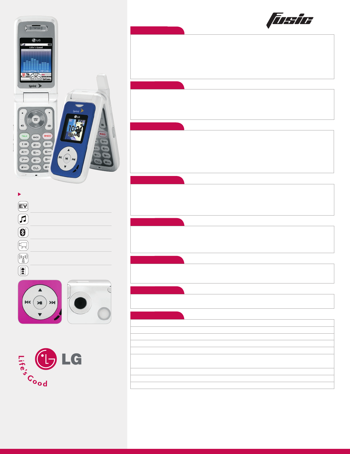 LG LX550 User Manual Data Sheet Fusic Datasheet