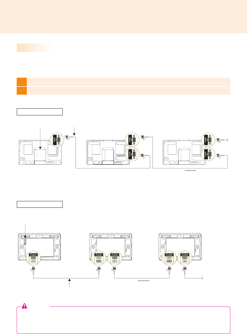 1Connect the RS-232C Out port of the MP500-F*** to the RS-232C In port of the rst monitor (SET ID 1).