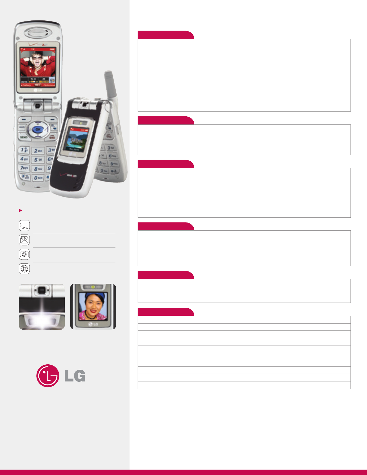 User Manual: LG VX7000 Data Sheet Datasheet is the s that describe the key features and specifications for the product. (English)