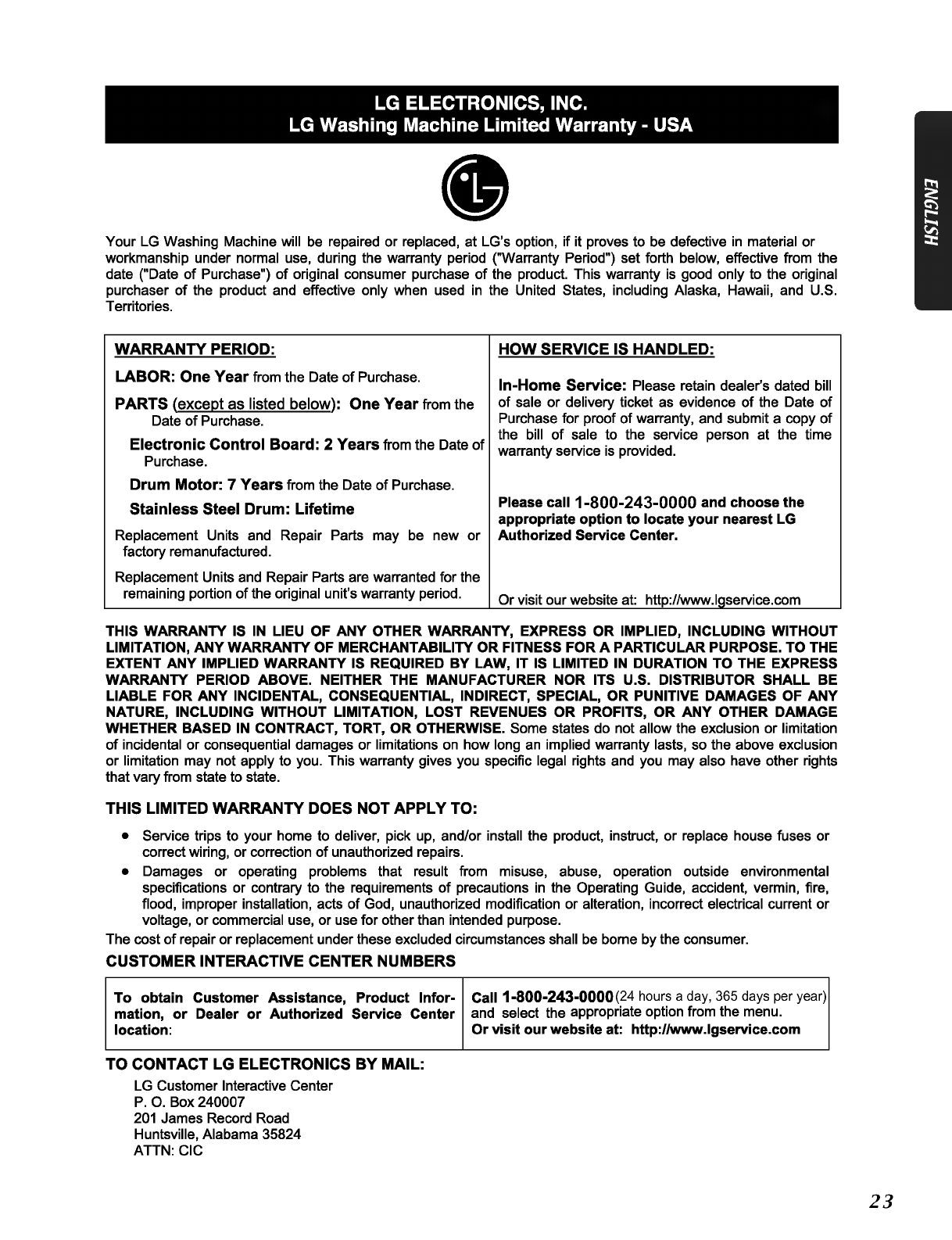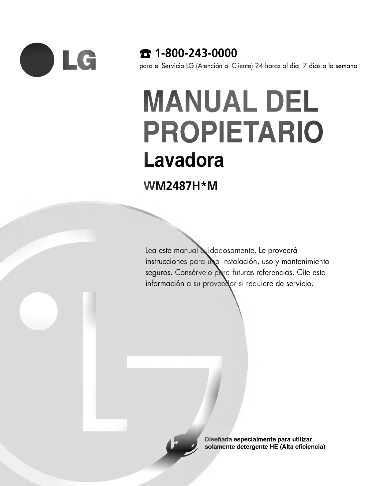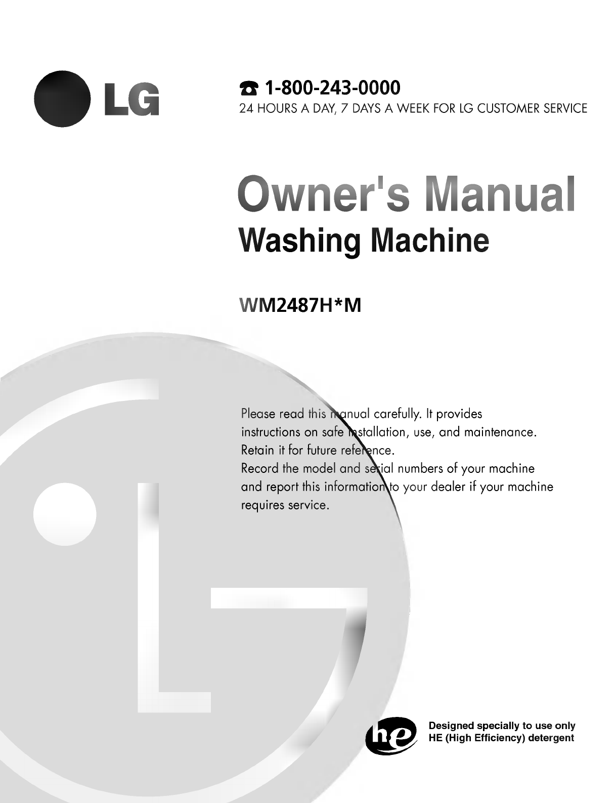 User Manual: LG WM2487HRM Owner's Manual Most comprehensive of product setup and usage. (English)