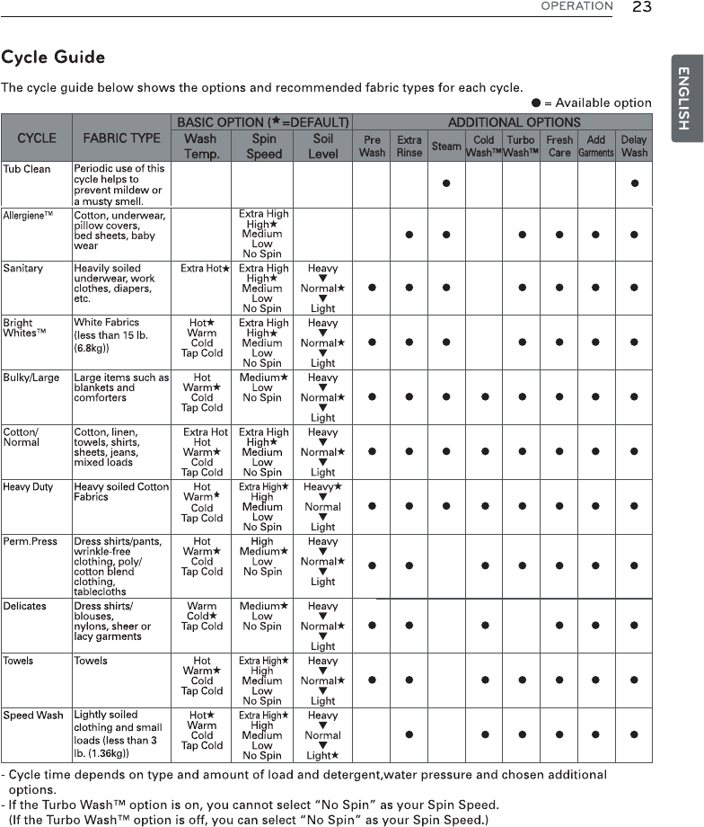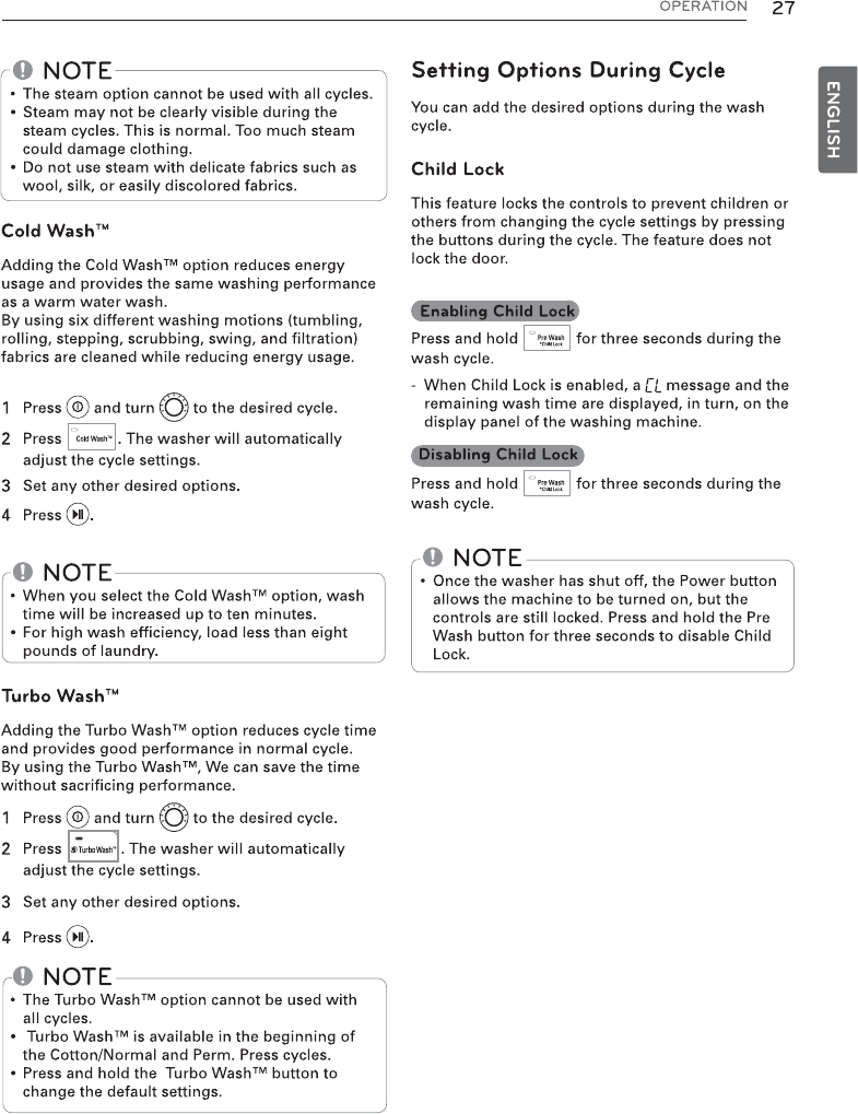 Use this option to disable the controls during a wash cycle. This option can prevent children from changing