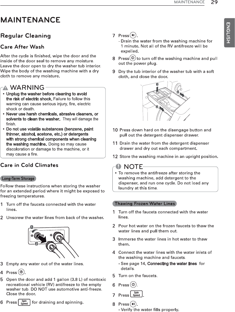 U Before the washer is removed from service or dis-