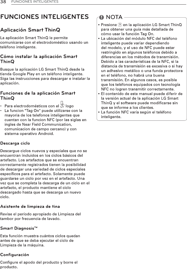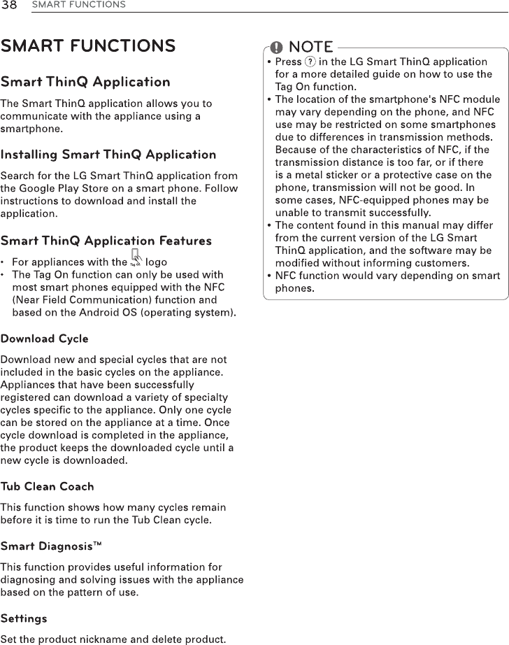 equipped LG appliance. Using the LG Smart ThinQ application, the Tag On feature allows you to diagnose