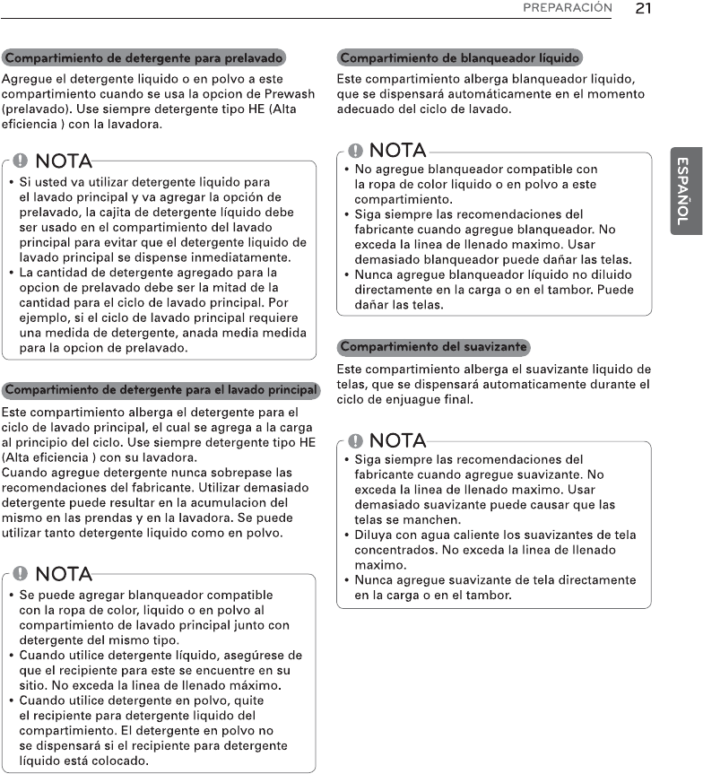 detergent, liquid bleach, and fabric softener into different compartments.