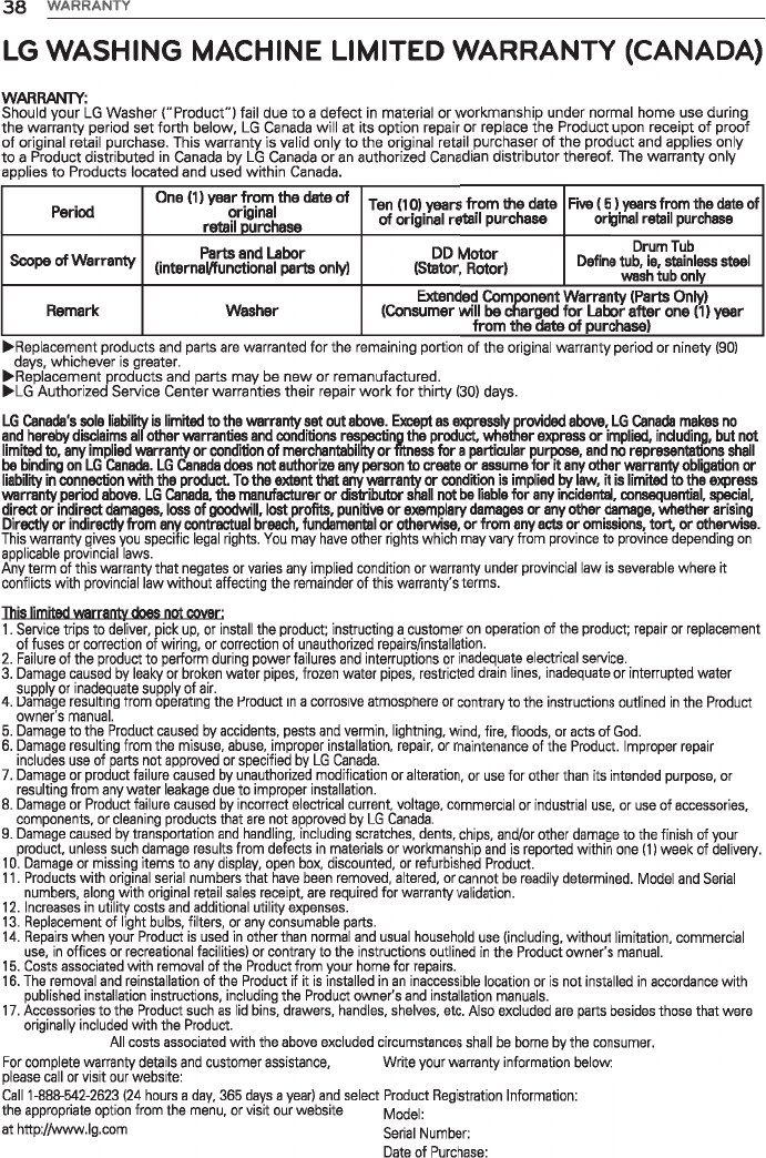 User Manual: LG WT1701CV Owner's Manual Most comprehensive of product setup and usage. (English, Spanish)