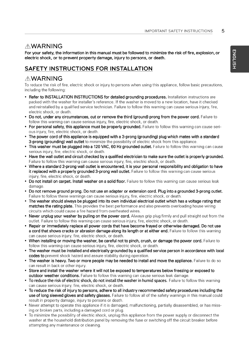 User Manual: LG WT5270CW Owner's Manual Most comprehensive of product setup and usage. (English)