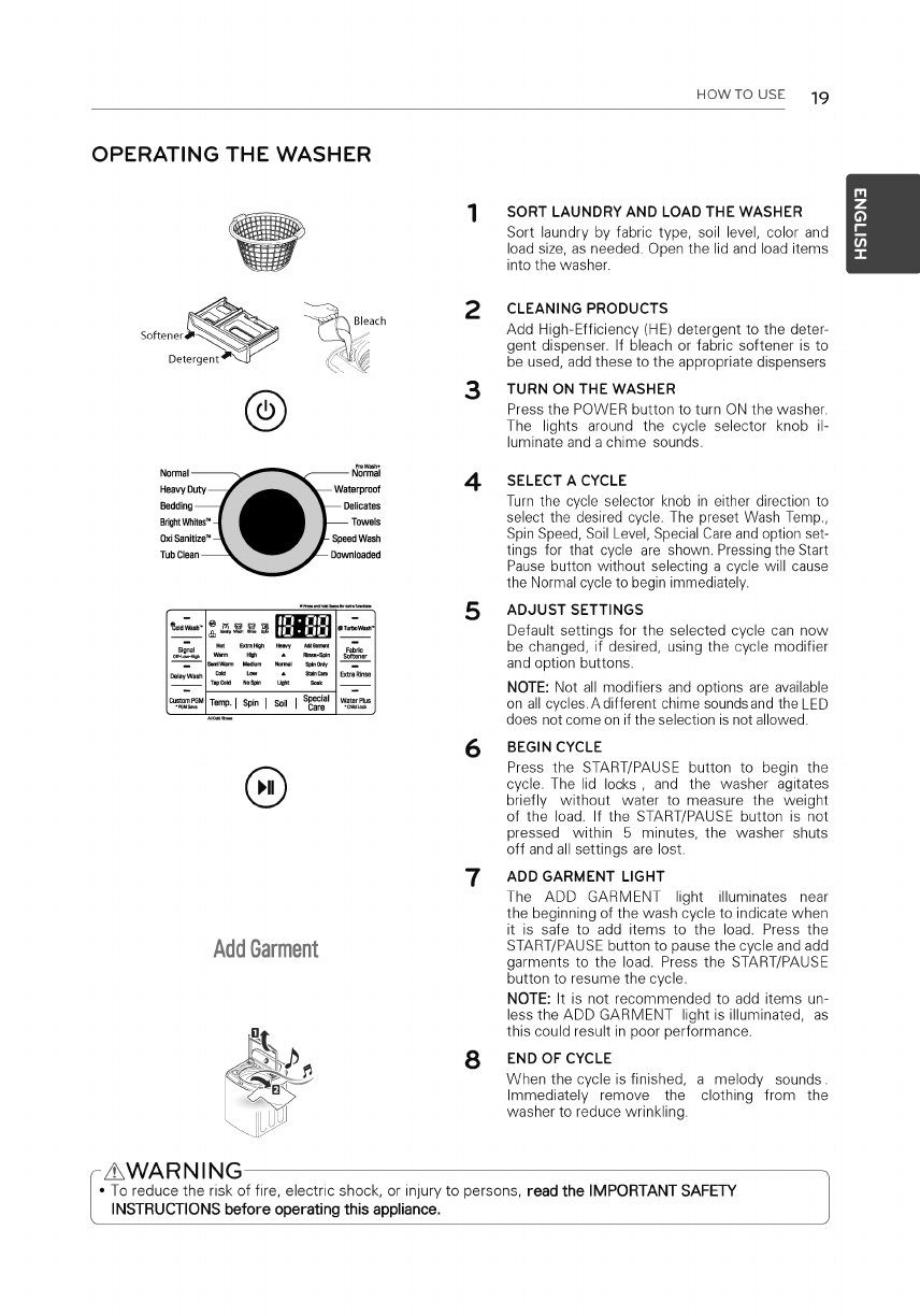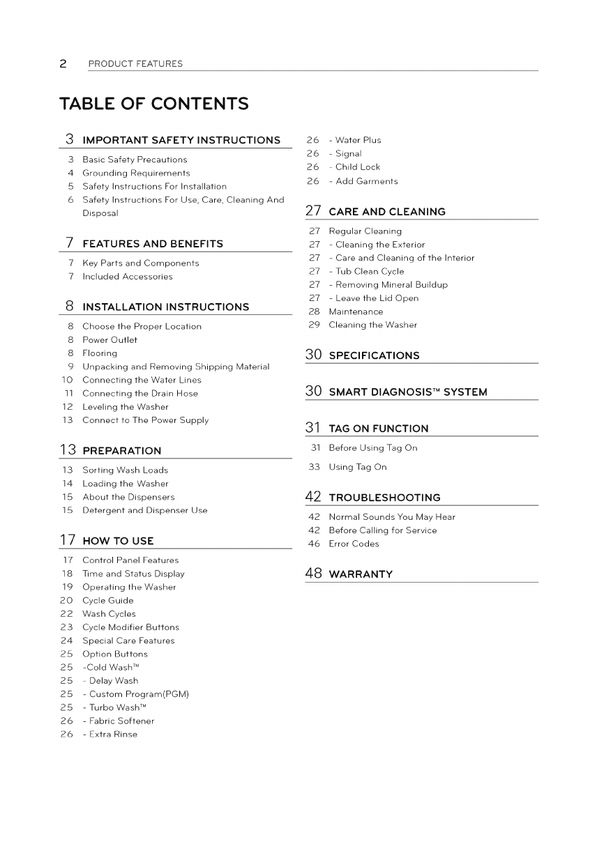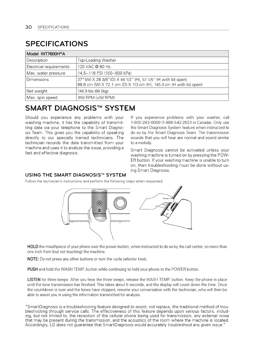 User Manual: LG WT7500CW Owner's Manual Most comprehensive of product setup and usage. (English)