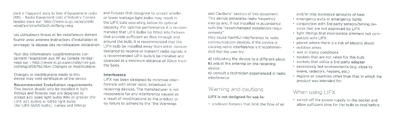“Contains FCC ID:2AA53-LIFX01 and IC: 11475A-LIFX01 ”.