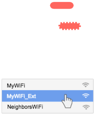 2. Click your extended network name. Click Connect. In the example below, the computer was