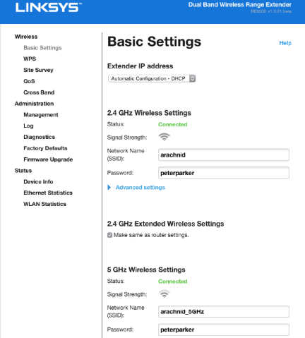 wraith_5GHz. Your extended network name, Damaged_Beez2.4_Ext in this example, is